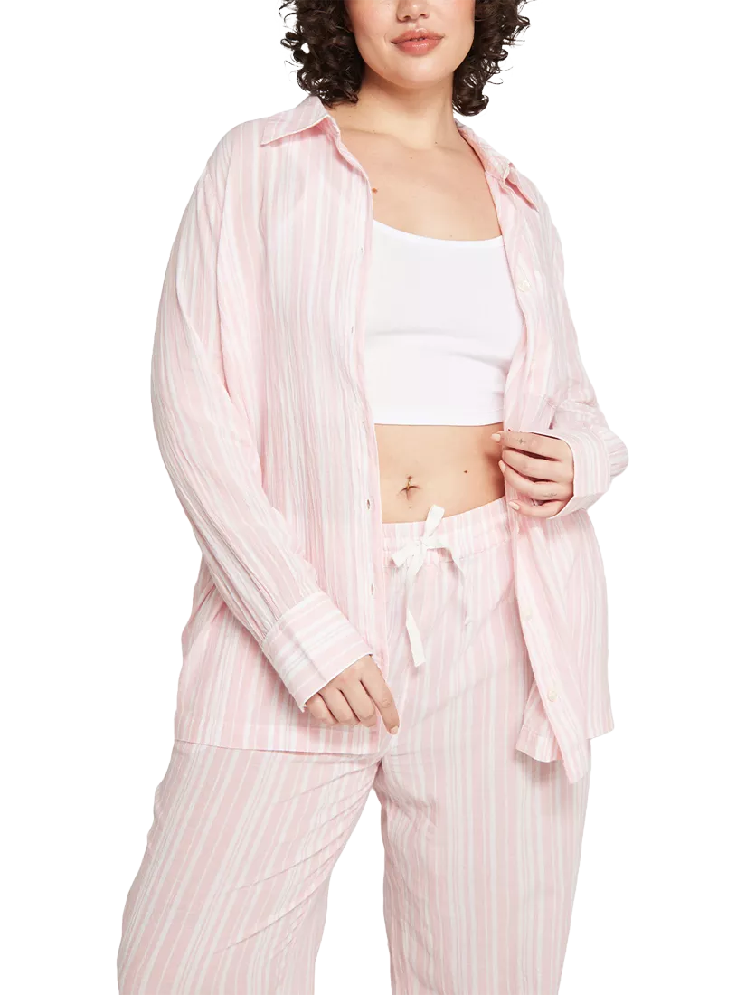 Give your boyfriend's shirt a break with this new sleep staple for your nightwear collection from Nudea. It has a relaxed classic silhouette and is crafted in 100% organic cotton with mother-of-pearl buttons and a lightweight finish.