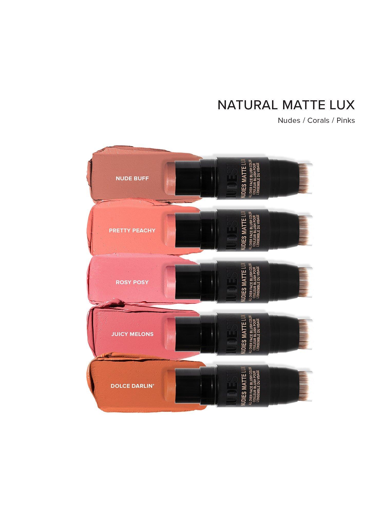 - Multi-tasking blush sticks that create a soft, matte cheek blush, natural eyelid colour and creamy lip in shades that will accentuate your natural beauty