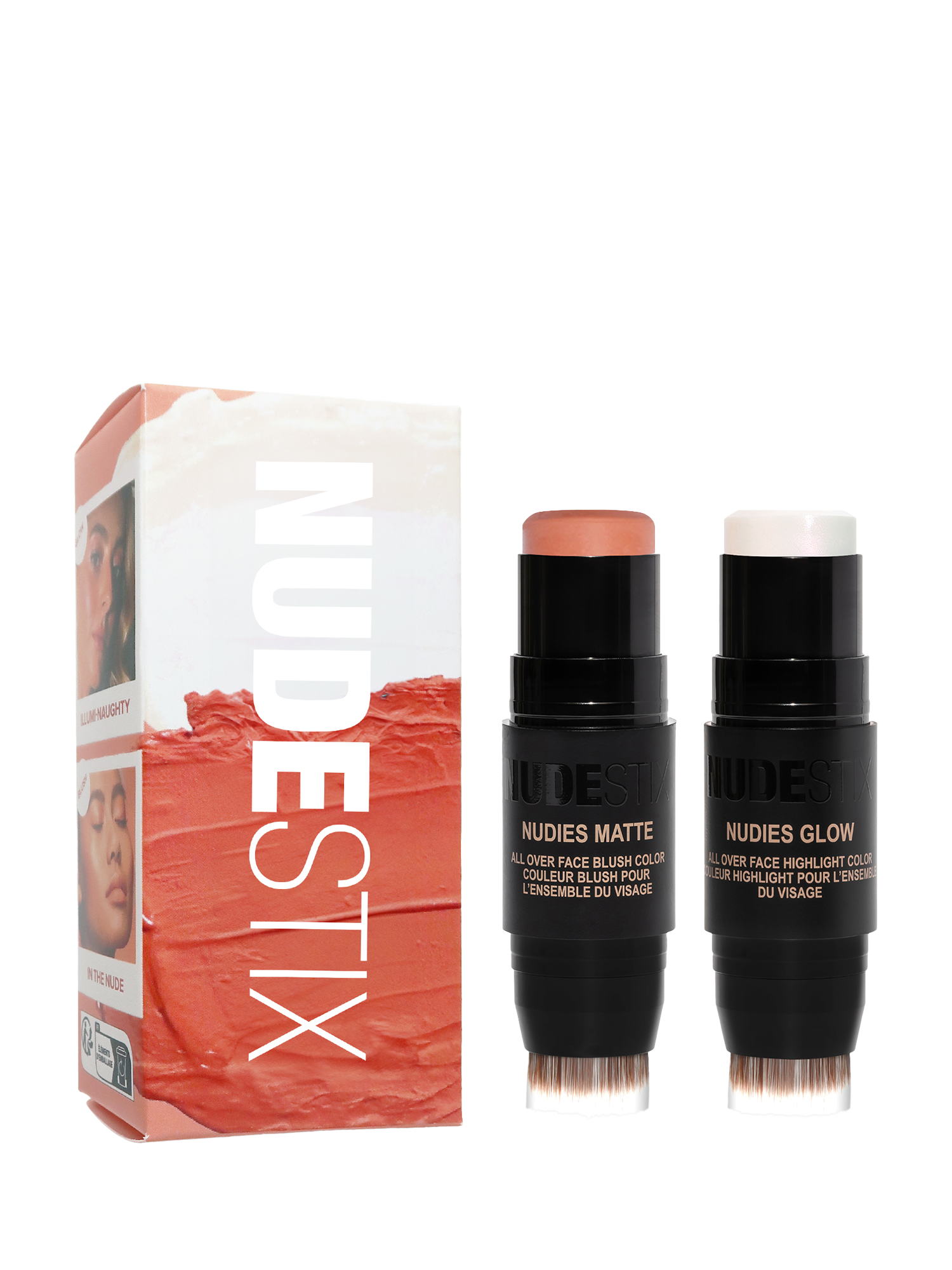 A limited-edition, 2-piece kit featuring our iconic multi-tasking Nudies All Over Face Colour in two textures: Nudies Matte Blush in shade, In The Nude and Nudies Glow Higlight in shade, Illumi-Naughty.