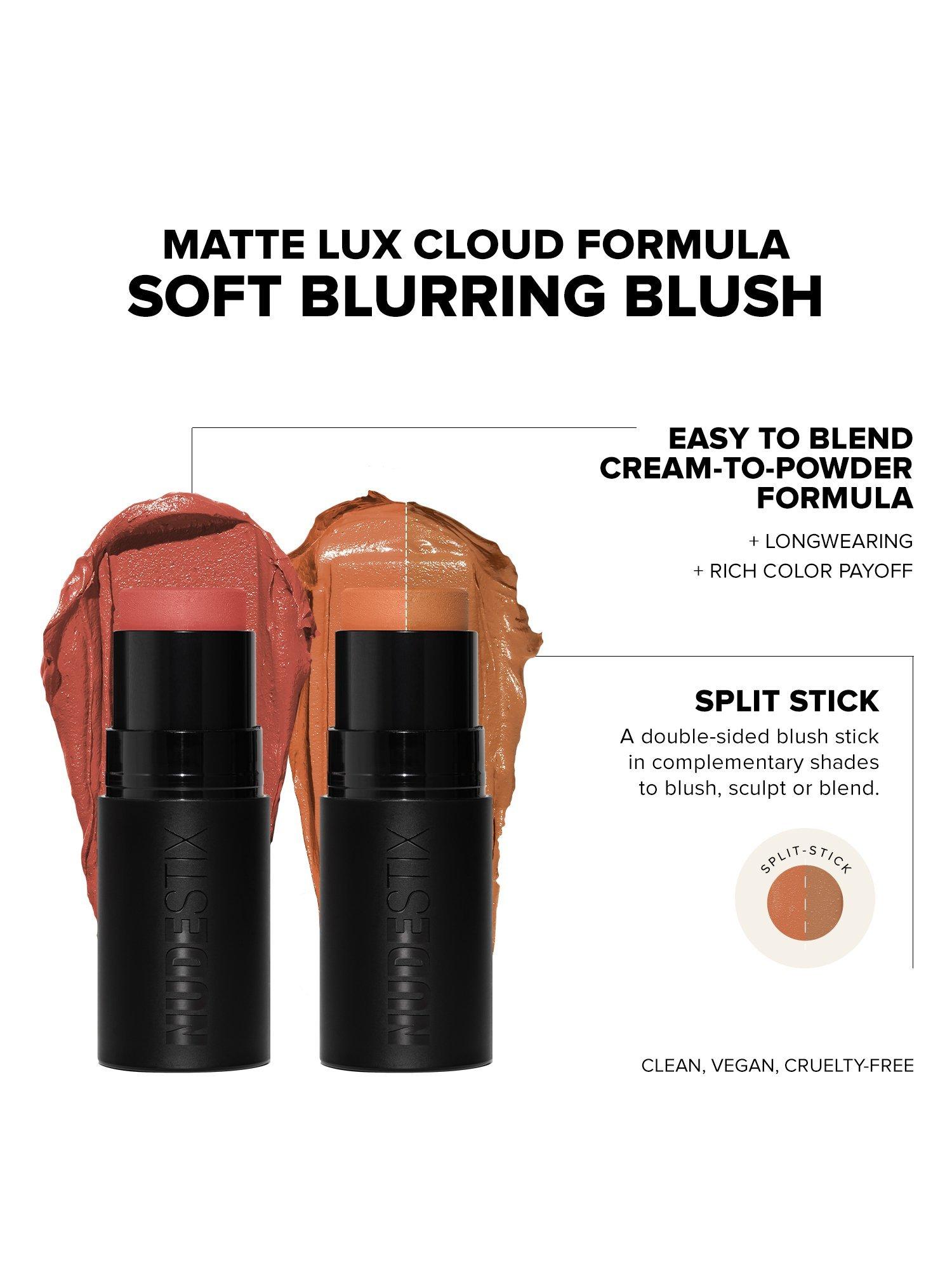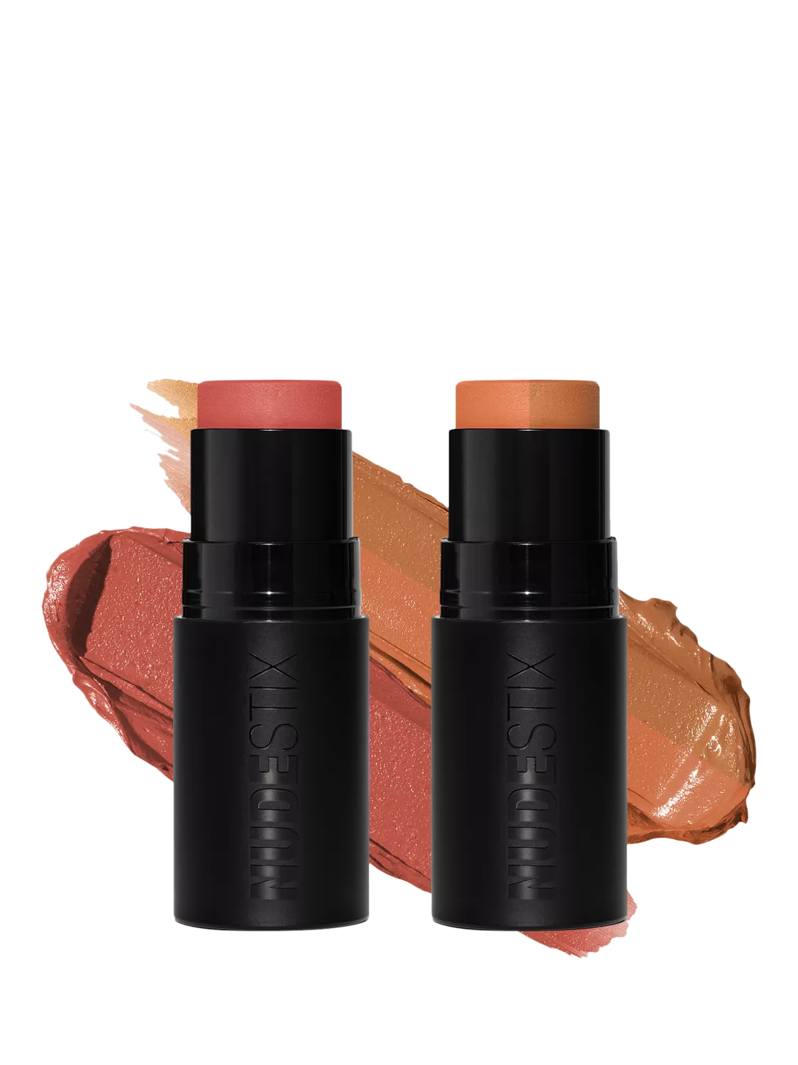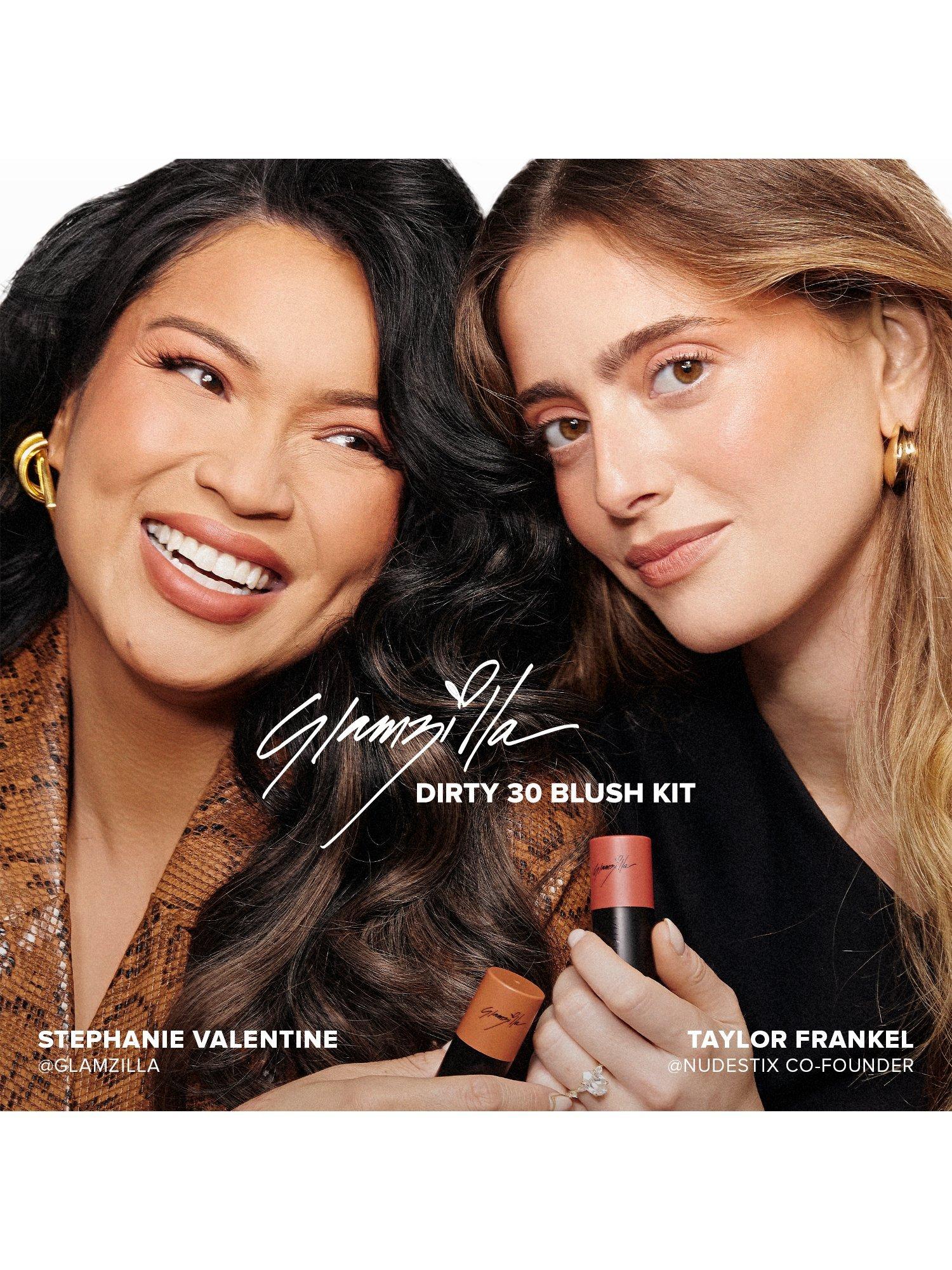 Evolve your beauty routine with the innovative Glamzilla Dirty 30 Blush Kit, in NUDIES MATTE LUX blurring blush formula, featuring the first-ever NUDIES MATTE LUX split stick, a double-sided blush stick in complementary Flirty & Thriving shades to blush, bronze, sculpt or blend together for endless possibilities.