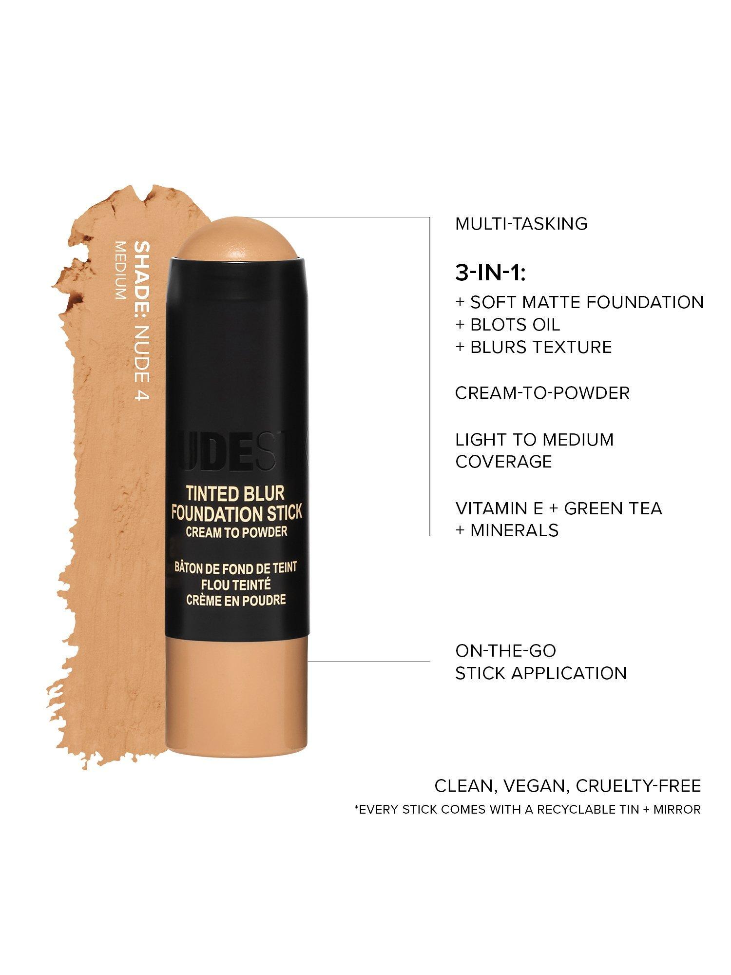 Using your NUDIES TINTED BLUR stick, simply draw lines over top of any blemishes, discolorations or pores you want hidden. Blend in with a makeup brush or your fingers to create a natural, all-over skin tint. You can also build up the product for more coverage without dealing with the heaviness of a normal foundation.