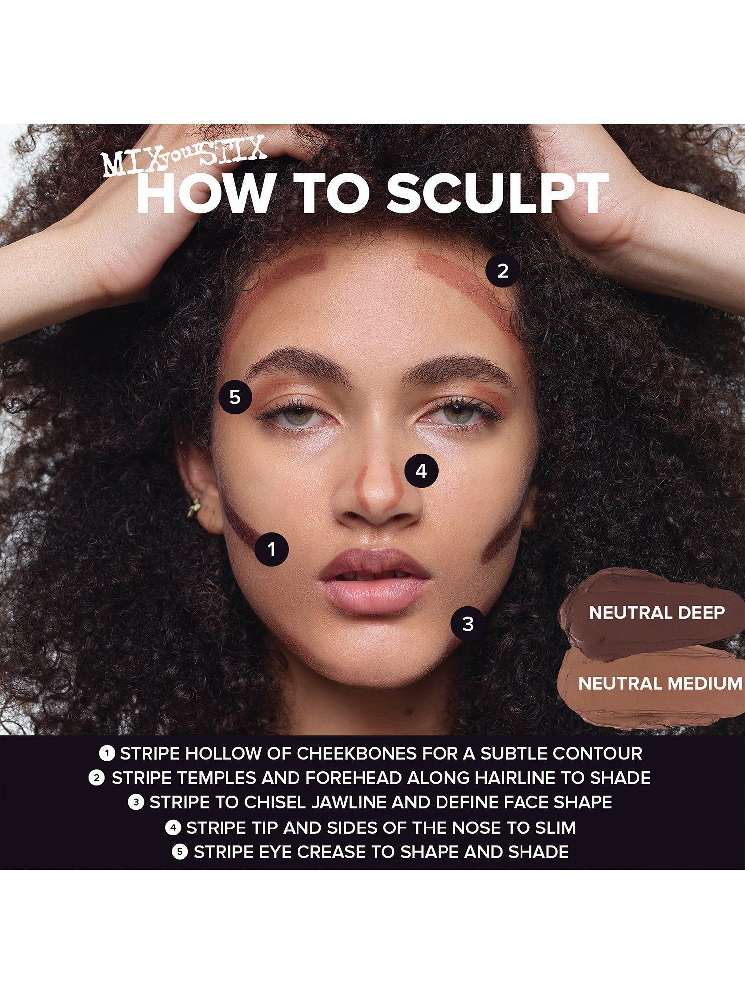 Unlike everyday foundation and concealer, which we typically want to match our skin exactly, sculpting is all about creating the lighting effect of shadow. We use lightweight brightening pigments that blend with your natural tone rather than mask it, so the skin looks real, sculpted, and lifted.