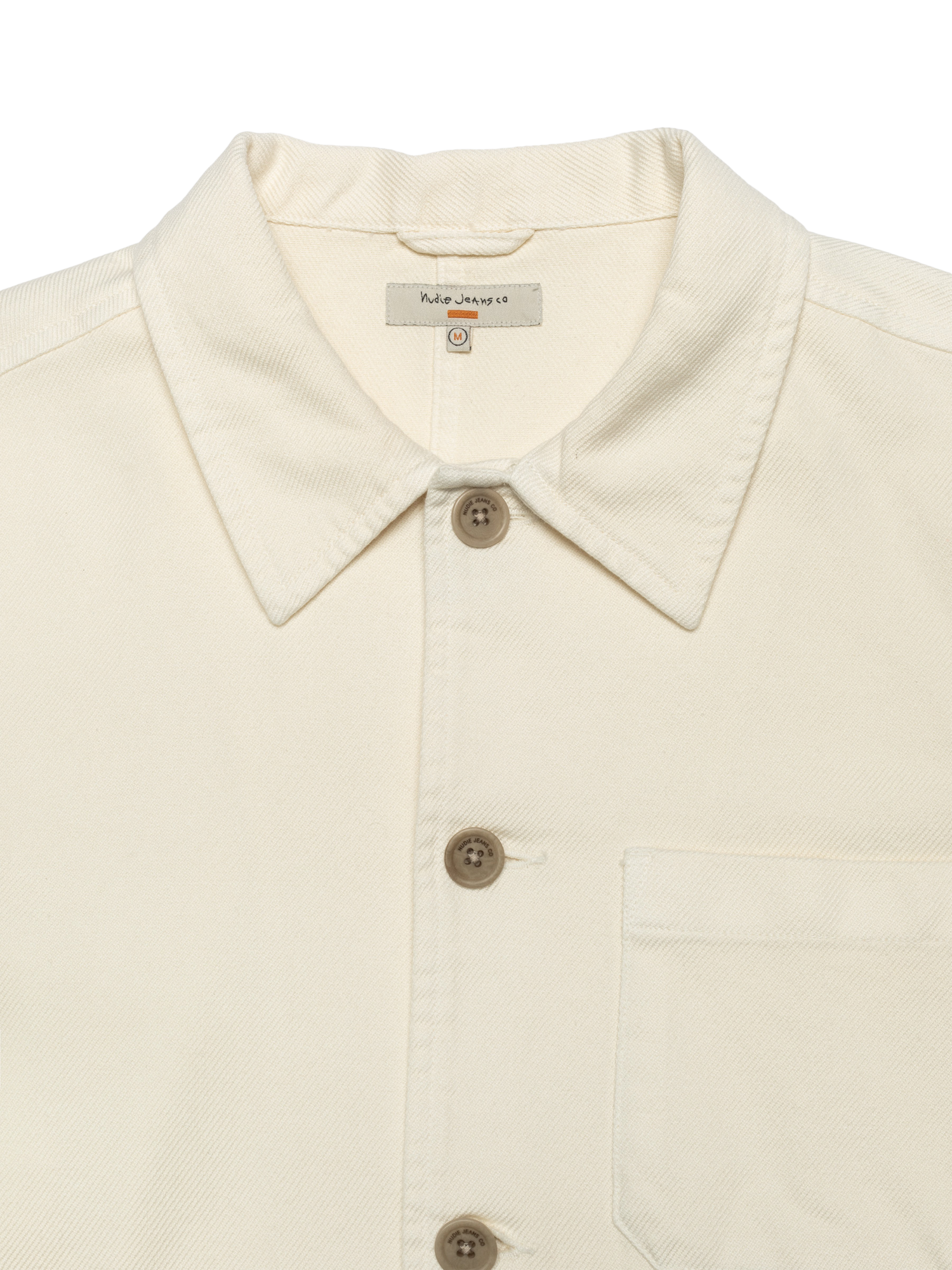 Crafted in a supple fabric with evident twill lines. This worker jacket features all the essential details: a point collar, three patch pockets, and one-button cuffs.