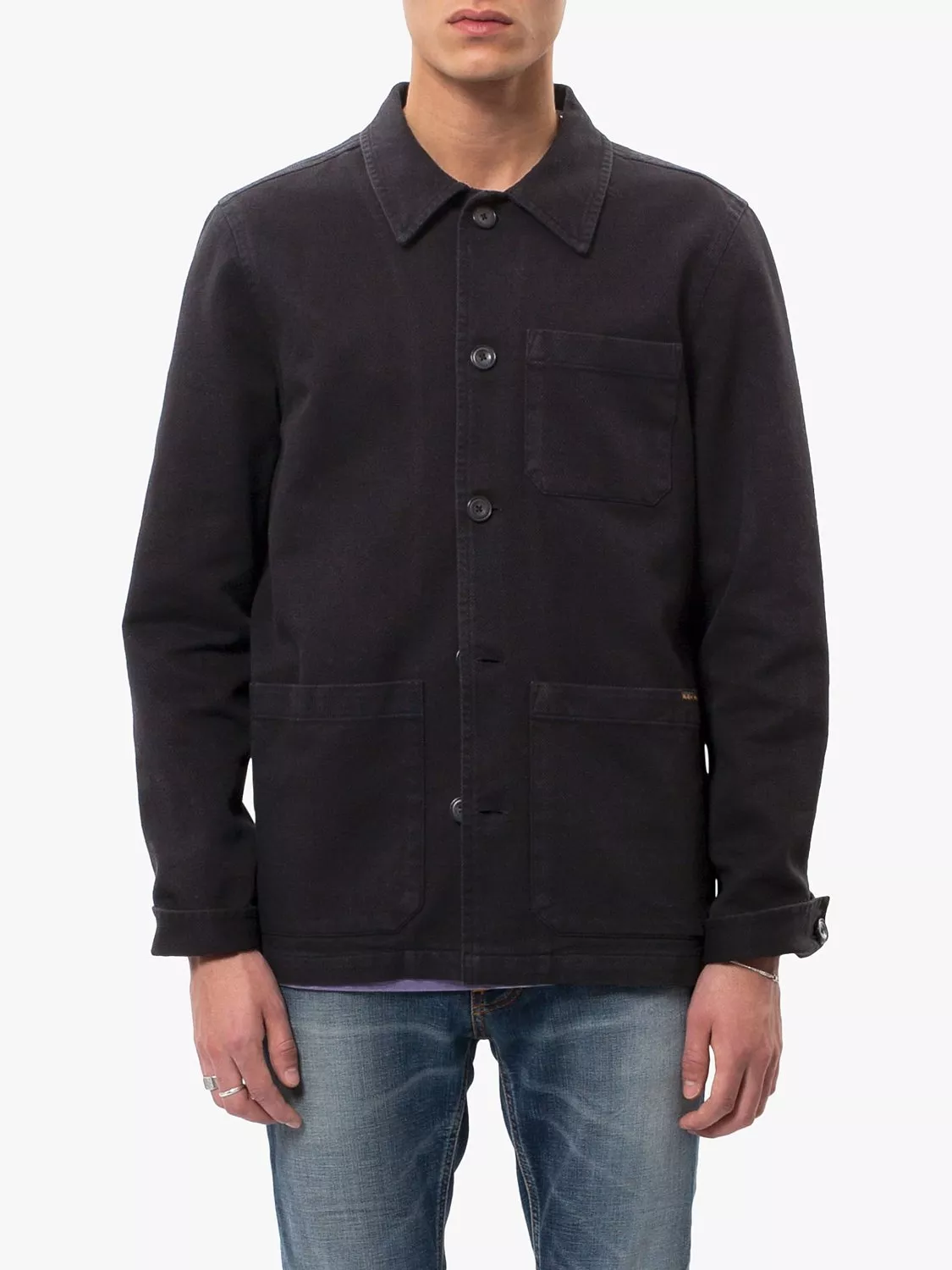 The classic French worker jacket has been a faithful companion to mankind since the 1800s and never goes out of style. This one's crafted from a supple fabric with evident twill lines. It features all the necessary details: a point collar, three patch pockets and single-button cuffs. It's unlined, and the flat fell seams give the inside a neat finish. A garment wash adds character to the outside and a lived-in outlook.