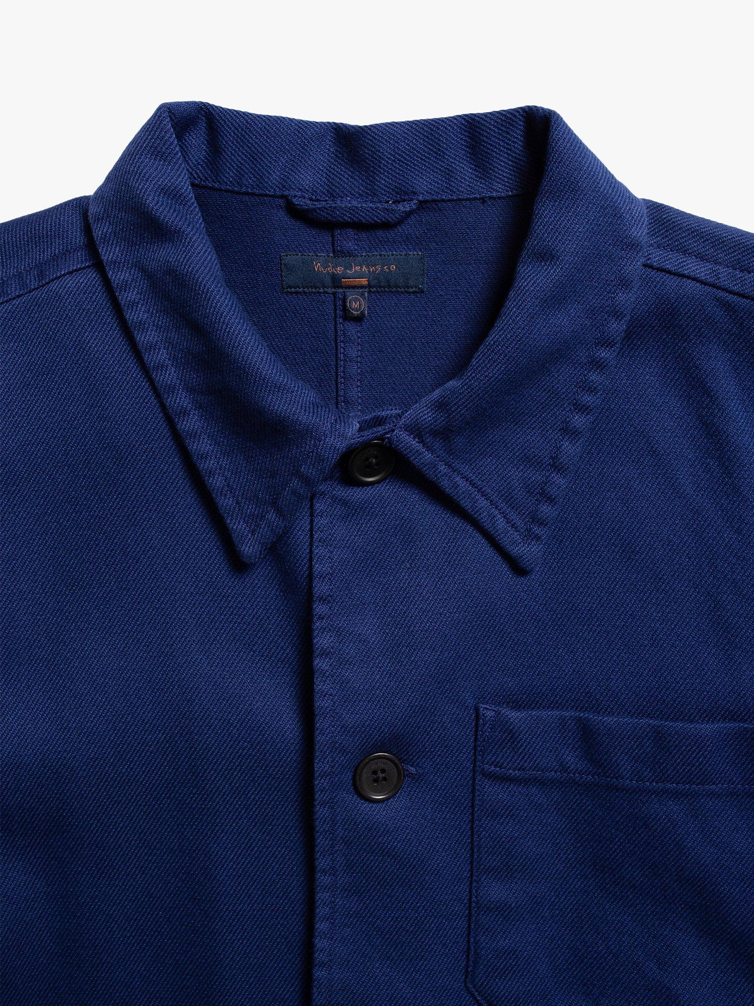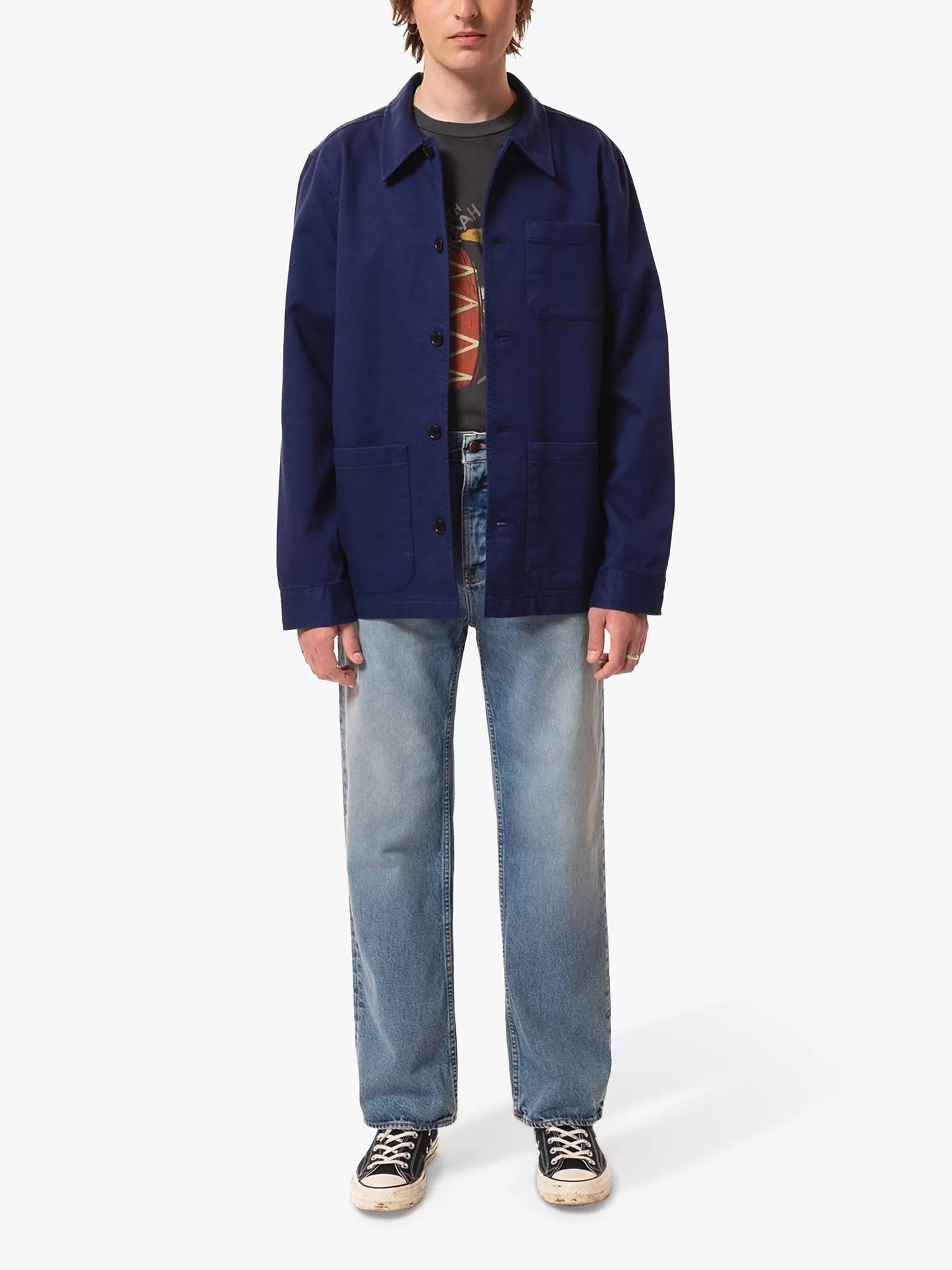 The classic French worker jacket has been a faithful companion to mankind since the 1800s and never goes out of style. This one's crafted from a supple fabric with evident twill lines. It features all the necessary details: a point collar, three patch pockets and single-button cuffs. It's unlined, and the flat fell seams give the inside a neat finish. A garment wash adds character to the outside and a lived-in outlook.