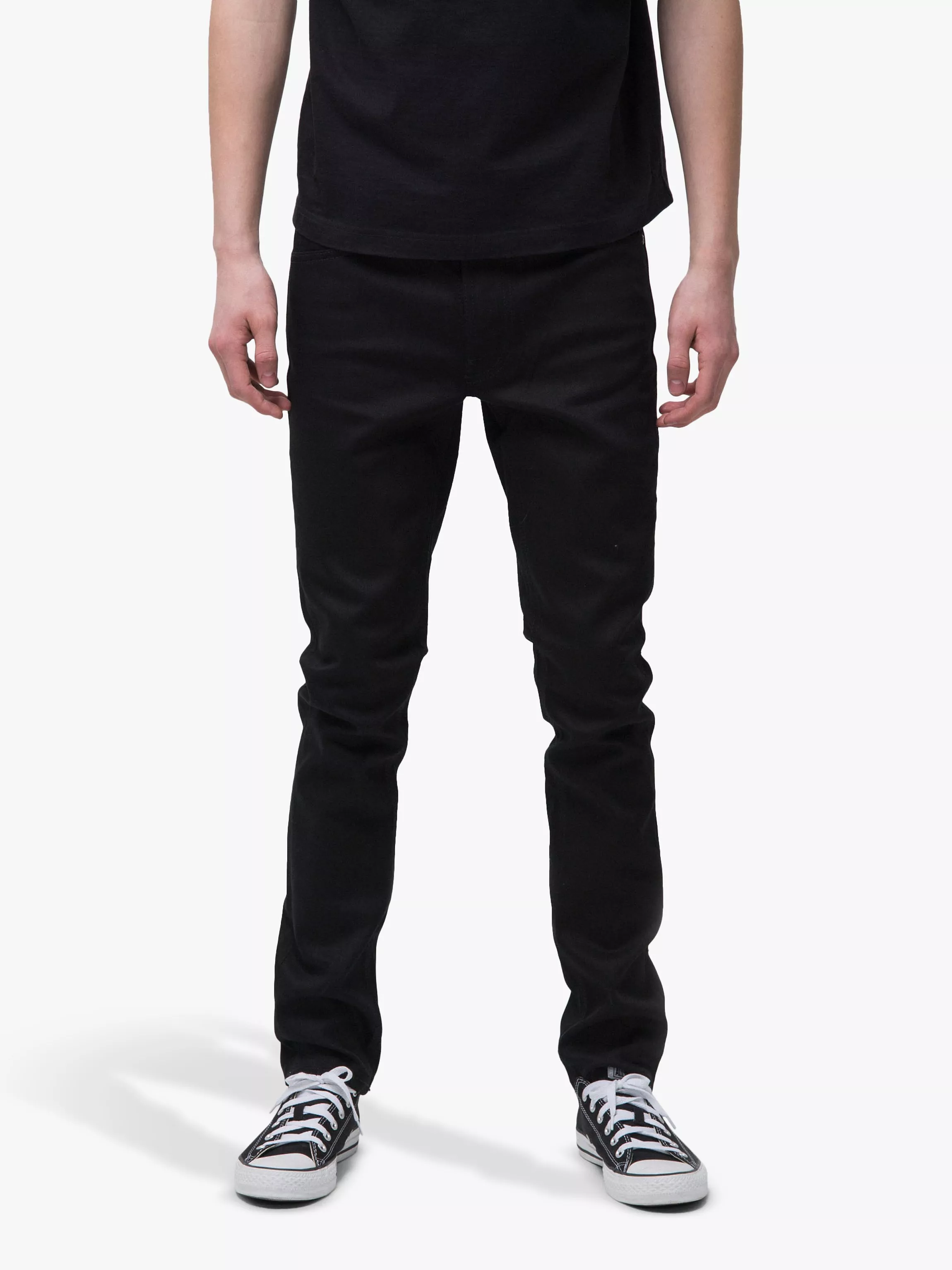 Made with added stretch, Nudie create a slightly sculpted profile with a slim cut and tapered leg that tightens nearer the ankle. They're designed with classic 5 pocket detailing, with all black stitching and antique silver trims offering a contemporary, minimalist edge. These ethically sourced jeans look best when paired with simple tees - after all, why let a t-shirt steal all the limelight?