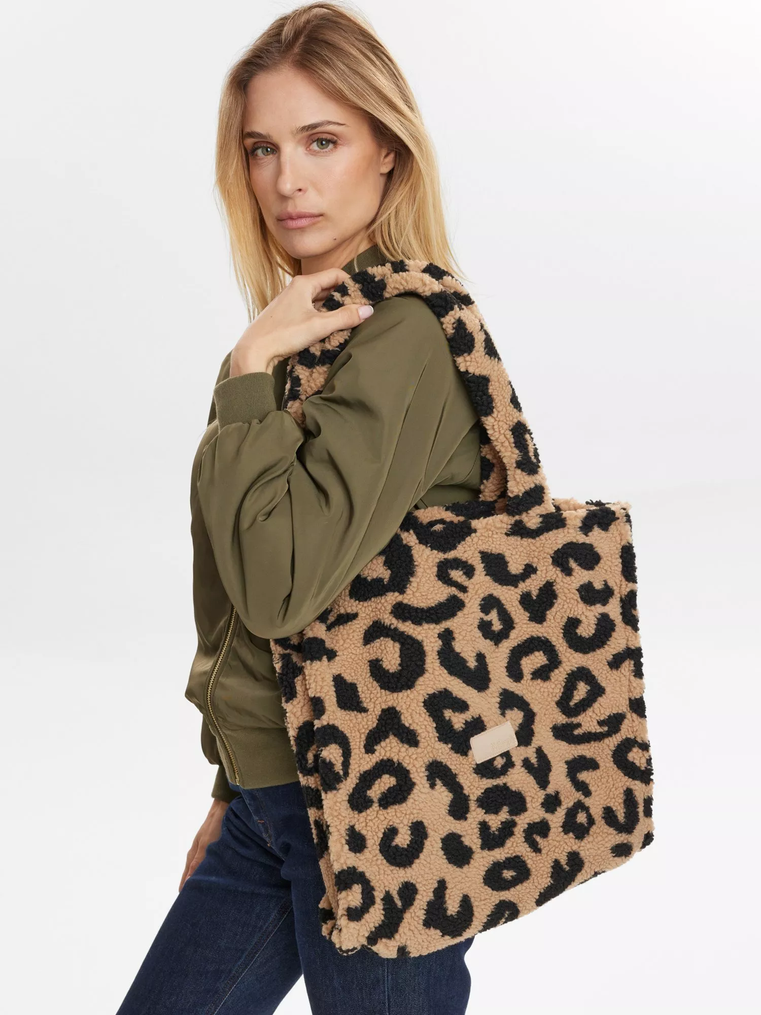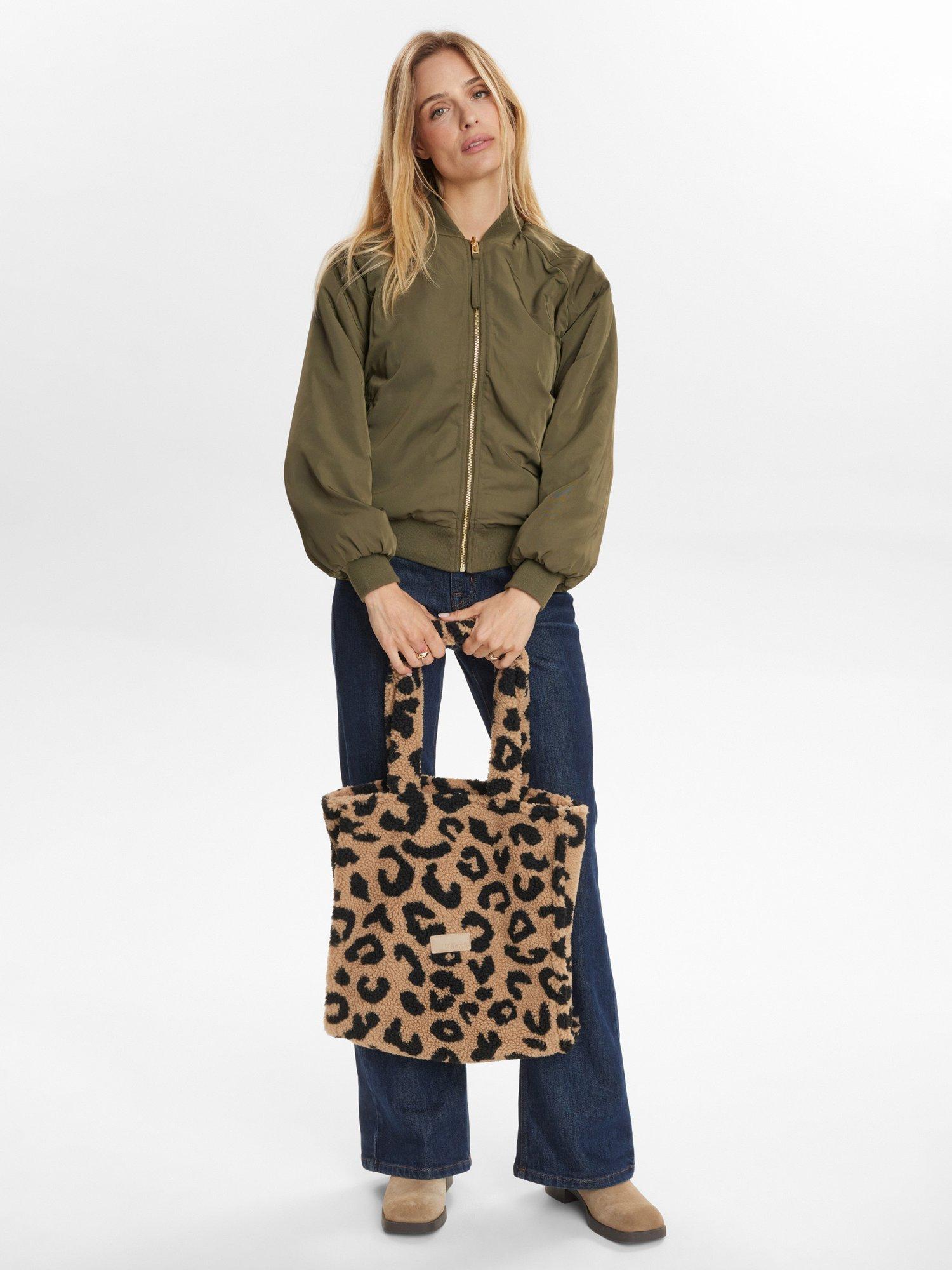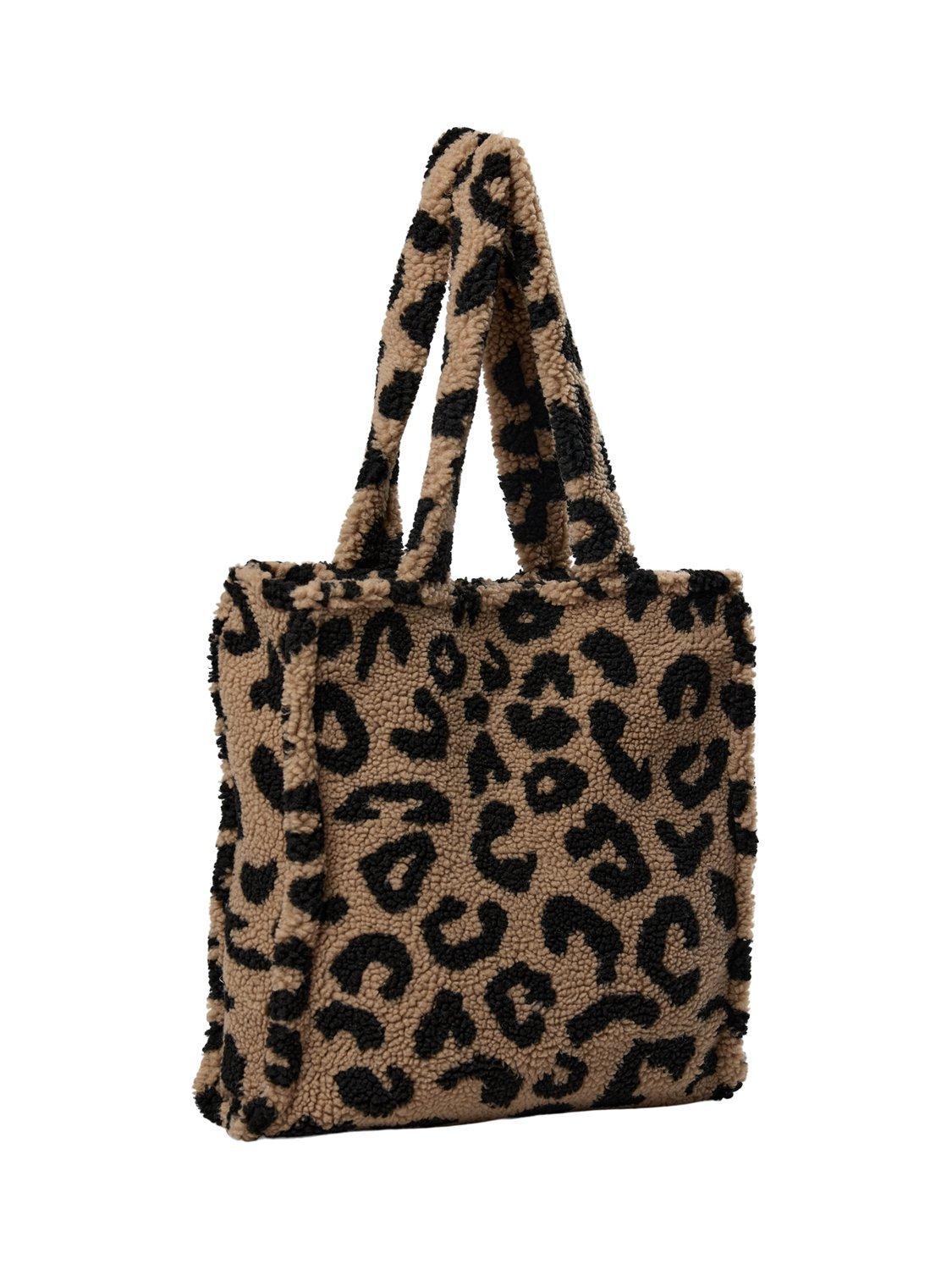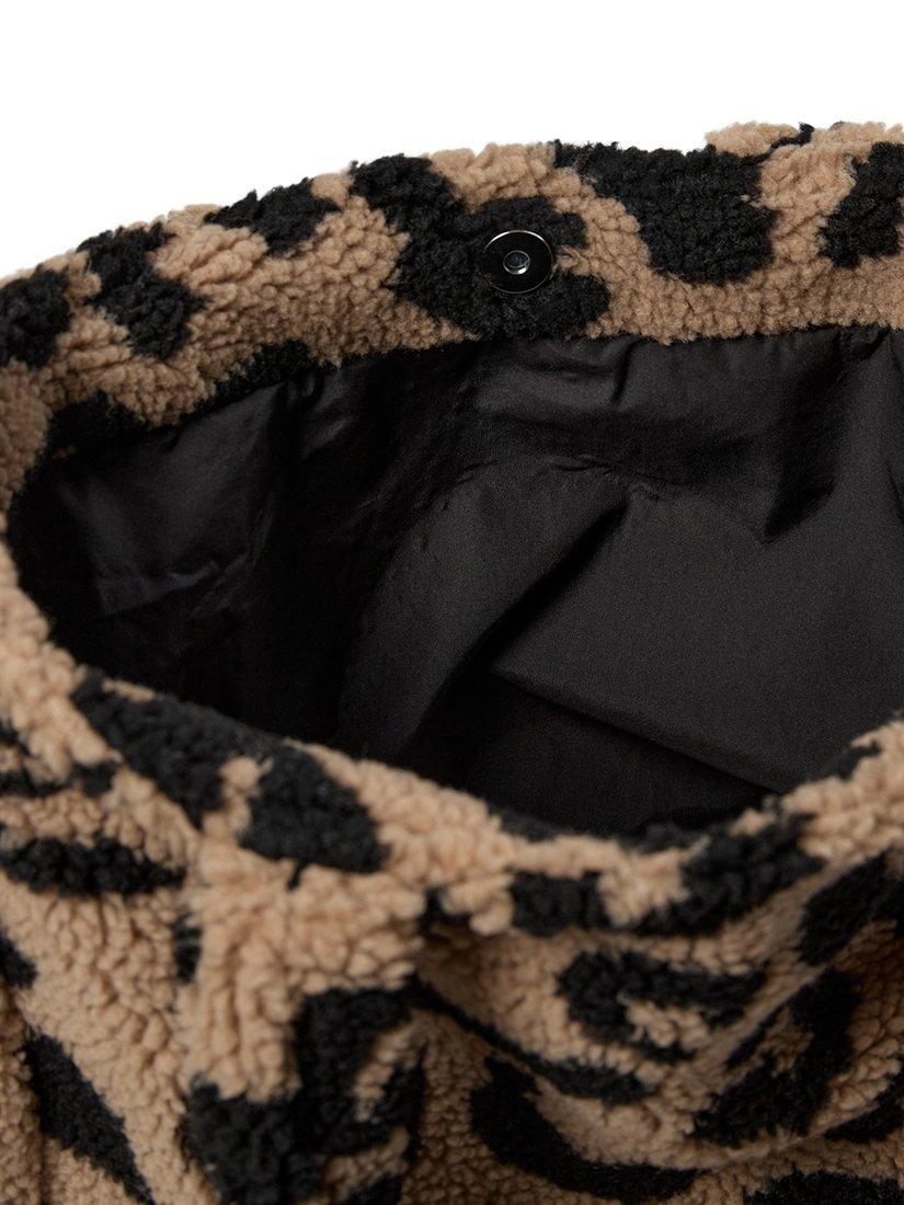 NumphCowie Leopard Print Teddy Tote Bag, Brown Multi