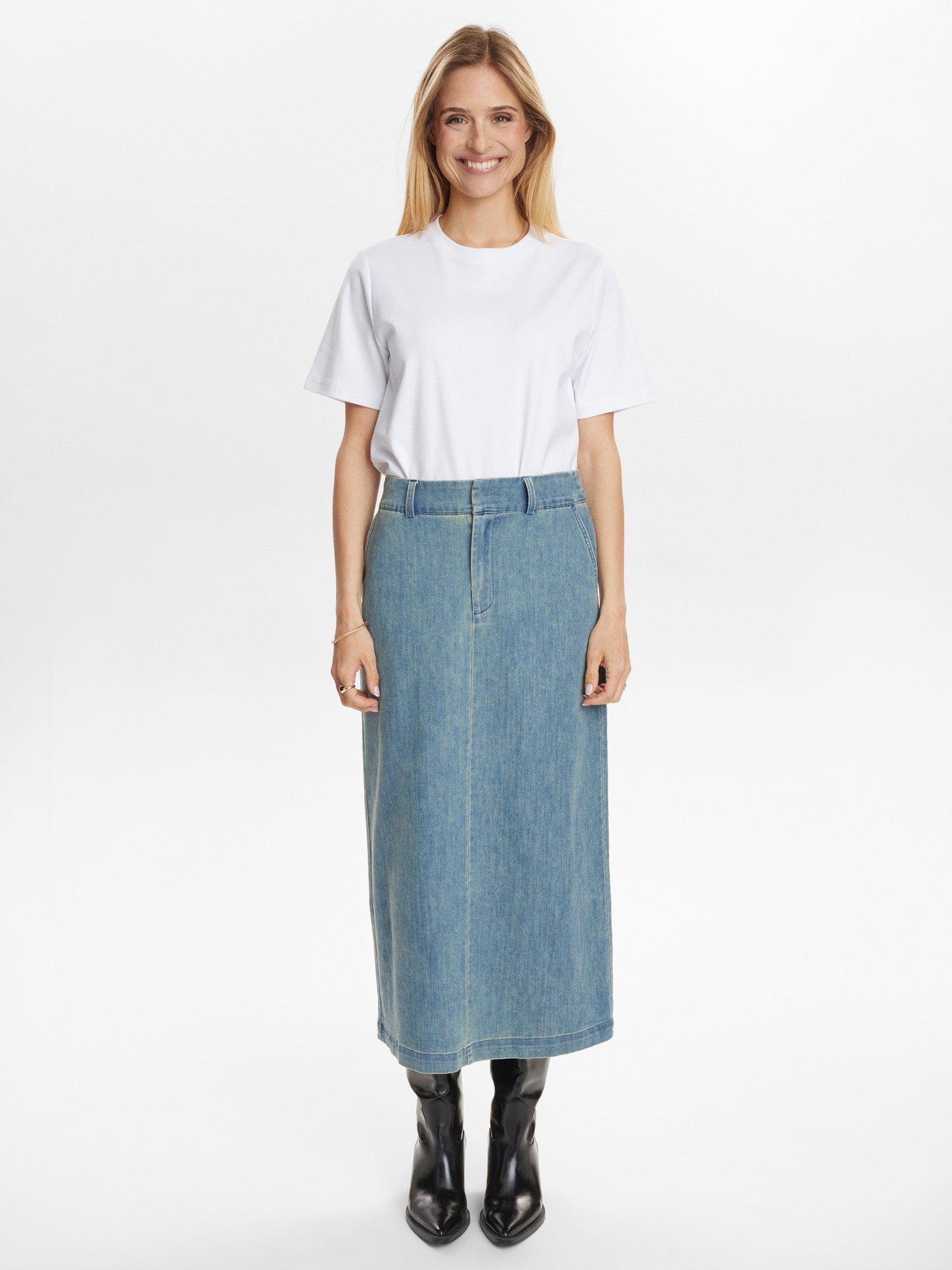 Numph’s high-rise midi skirt brings a fresh perspective to everyday dressing. Cleverly tailored from stretchy denim for comfort and confidence, it’s ready to pair with your favourite staples.
