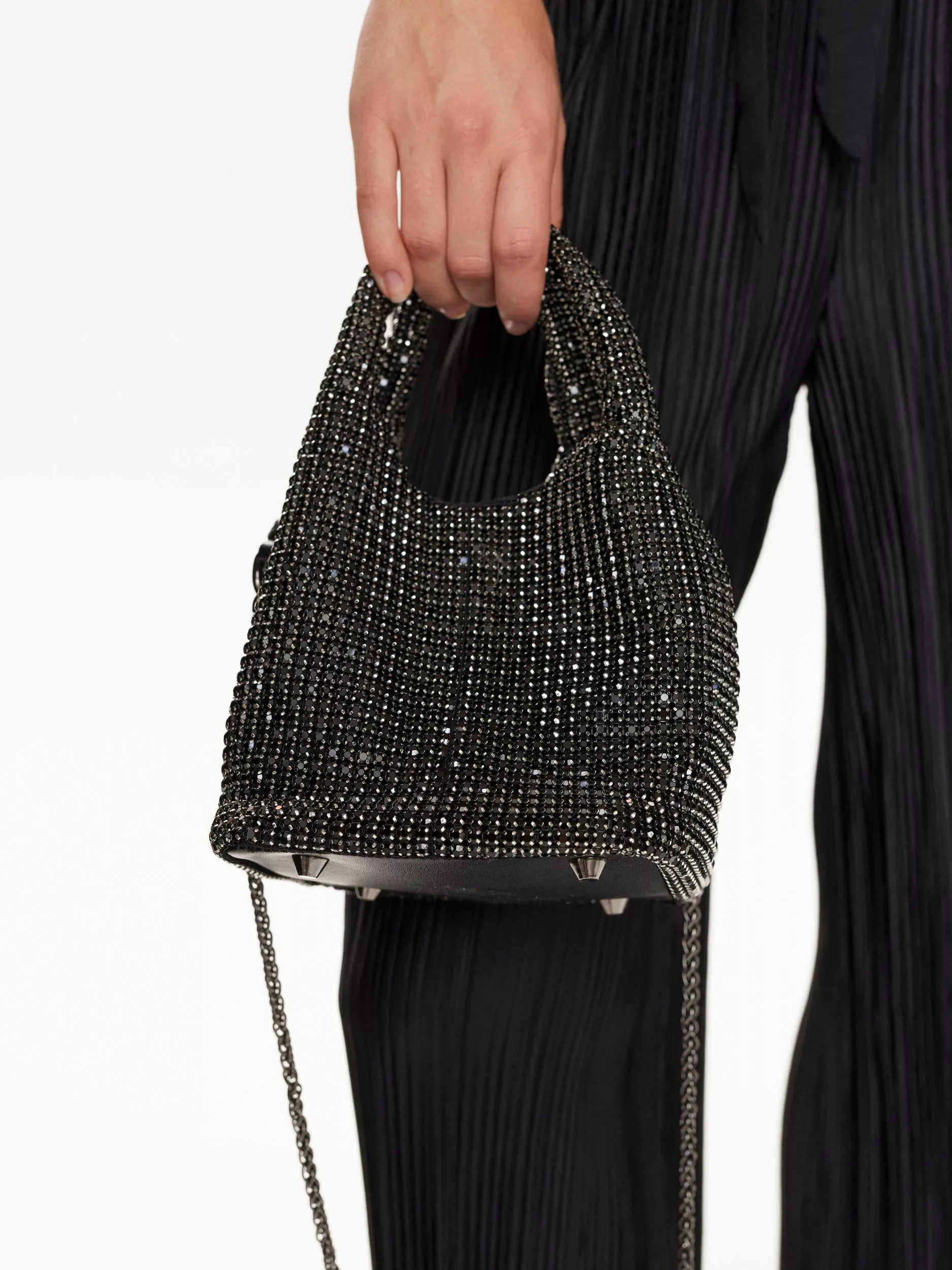 Accenting your evening looks, this mini grab bag from Numph is embellished with crystals. Crafted with a top handle and a long strap, it closes shut with a magnet fastening.