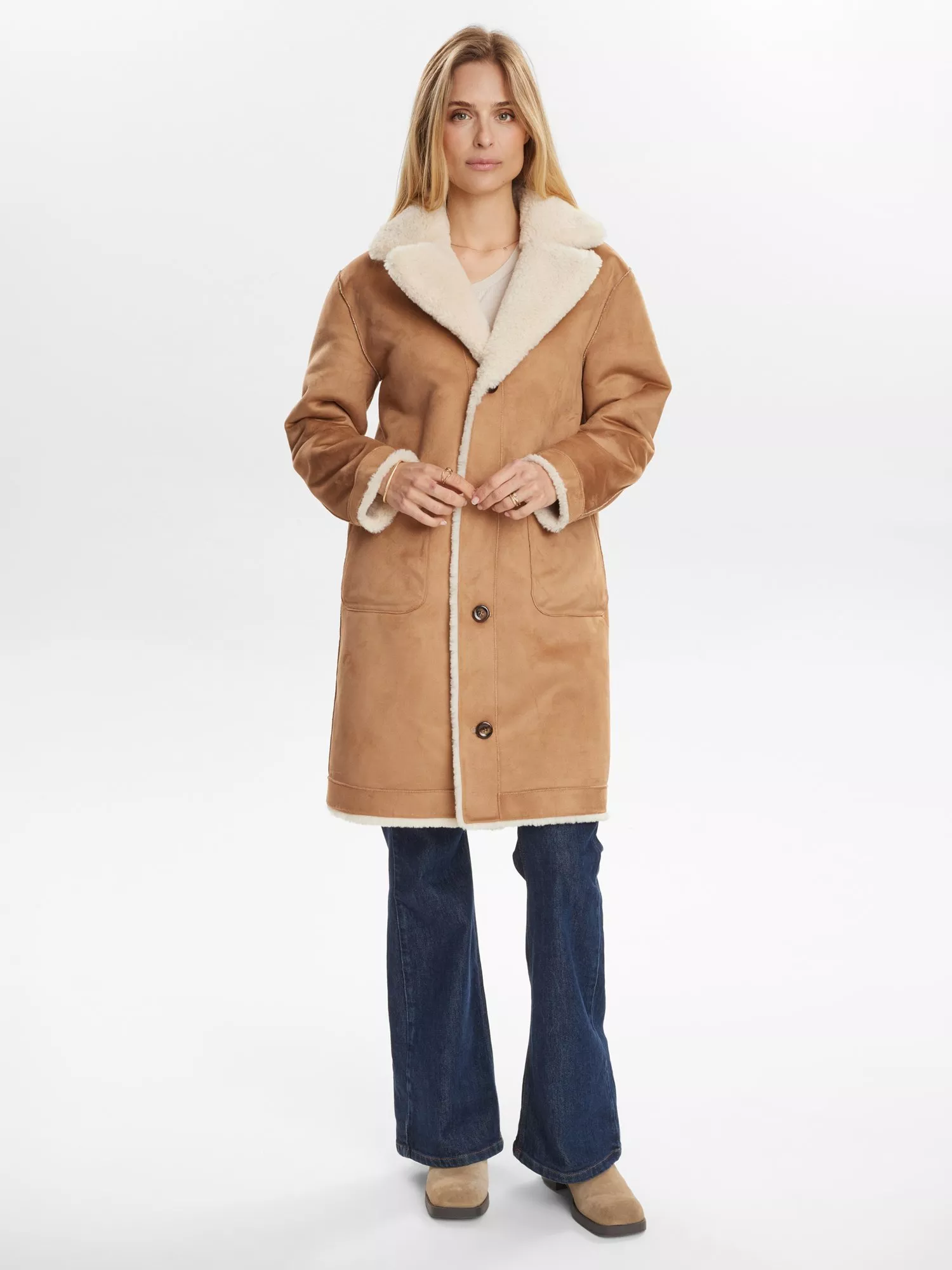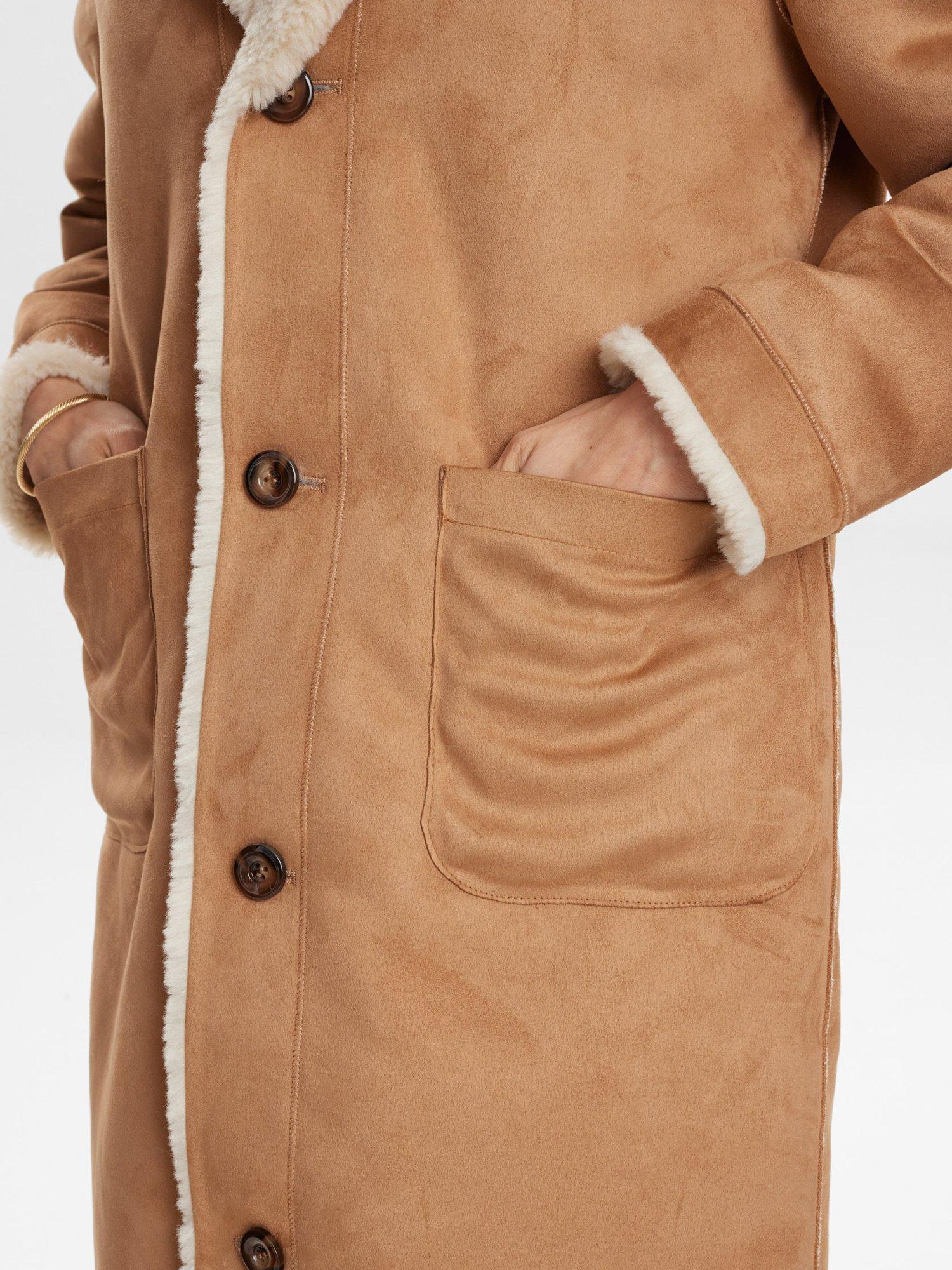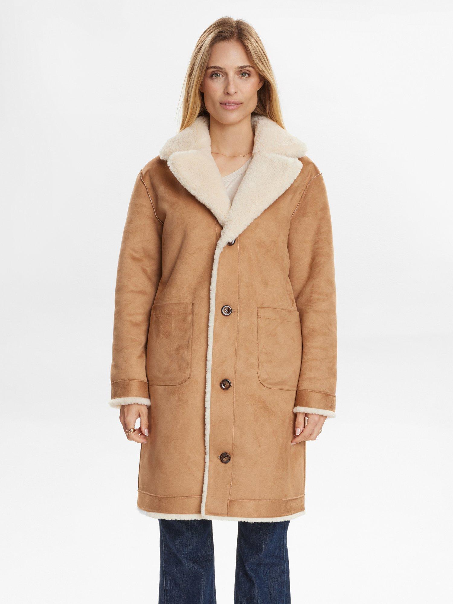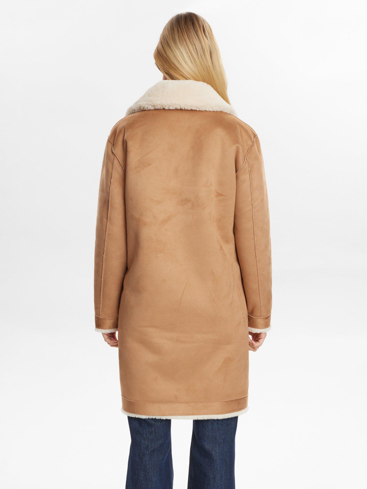 This midi reversible coat from Numph gives you warmth and comfort on chilly days. Its regular fit and long sleeves let you move easily, while the V-neck and soft finish make it a go-to choice for relaxed winter outings. Choose between the suede side or the fluffy teddy finish.