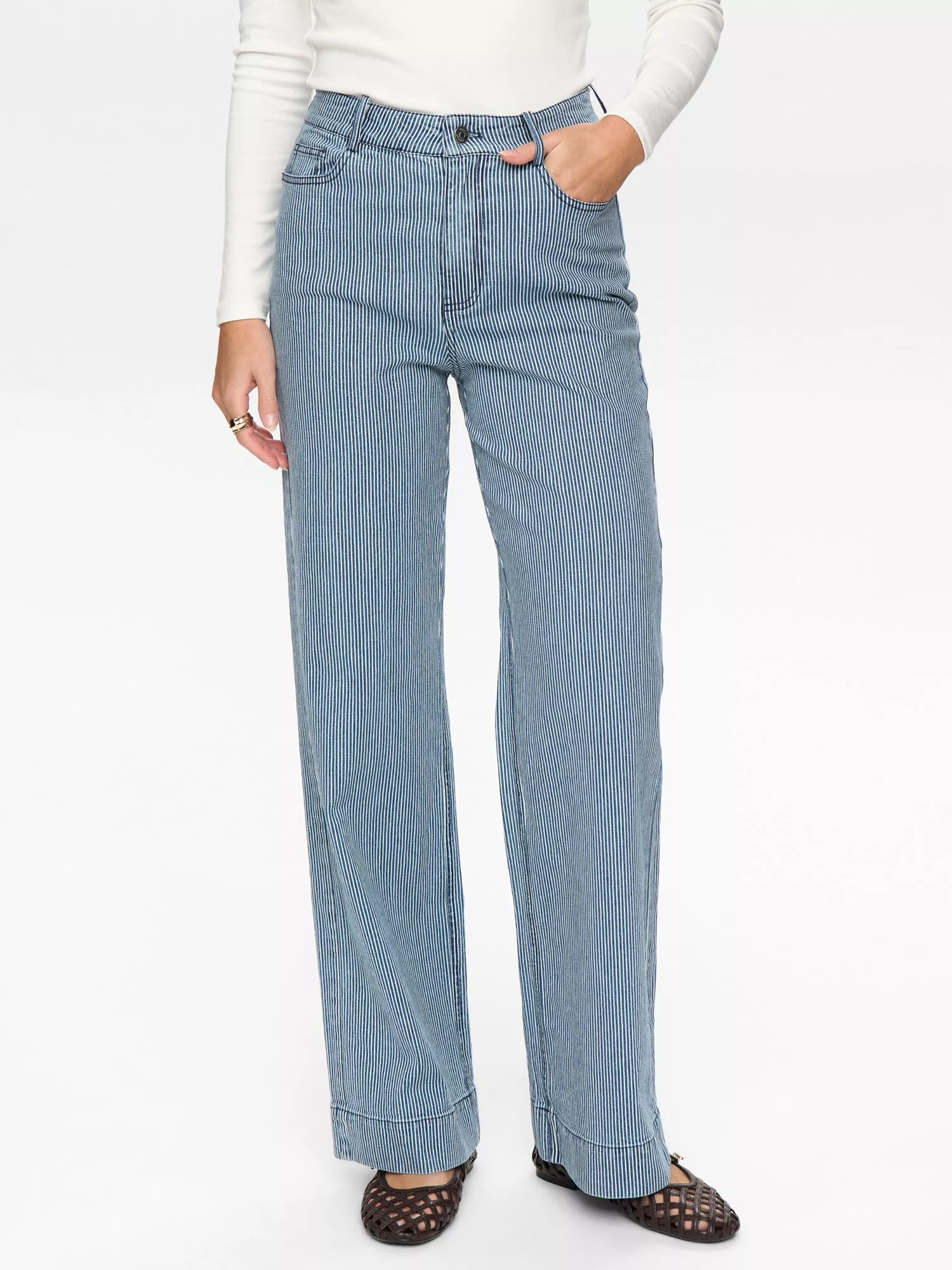 A sharply tailored pair of skinny trousers from Numph made from nothing but cotton. This style is cut to sit mid rise with a button fastening, stripes and hems that fall to a regular length.