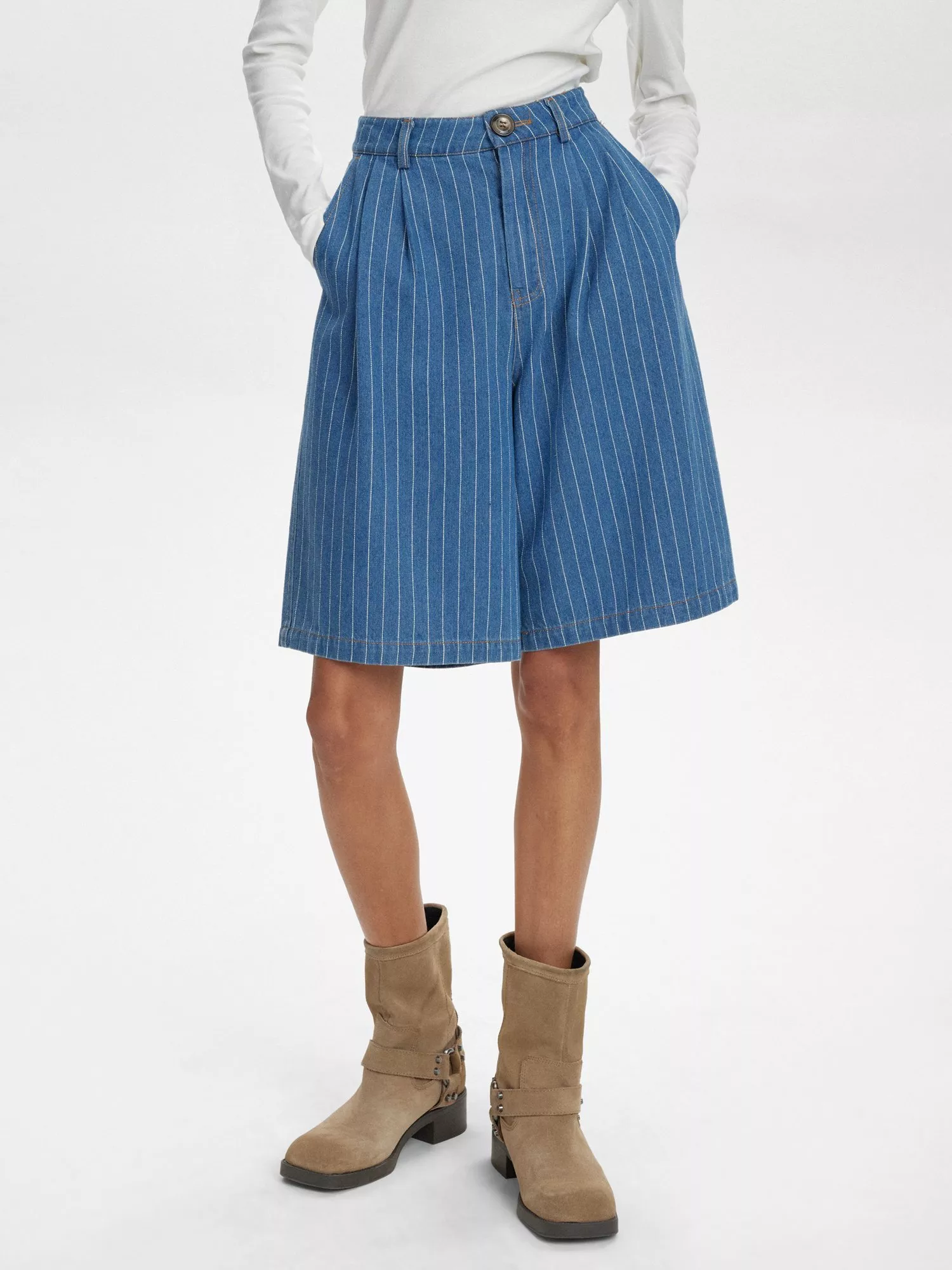 Tapping into the nautical mood, these striped high-waisted shorts from Numph are built from denim that's sure to withstand the test of time. A faithful go-to, this pair will look just as good with a bikini on your next tropical getaway as they will styled with a blouse for urban adventures.