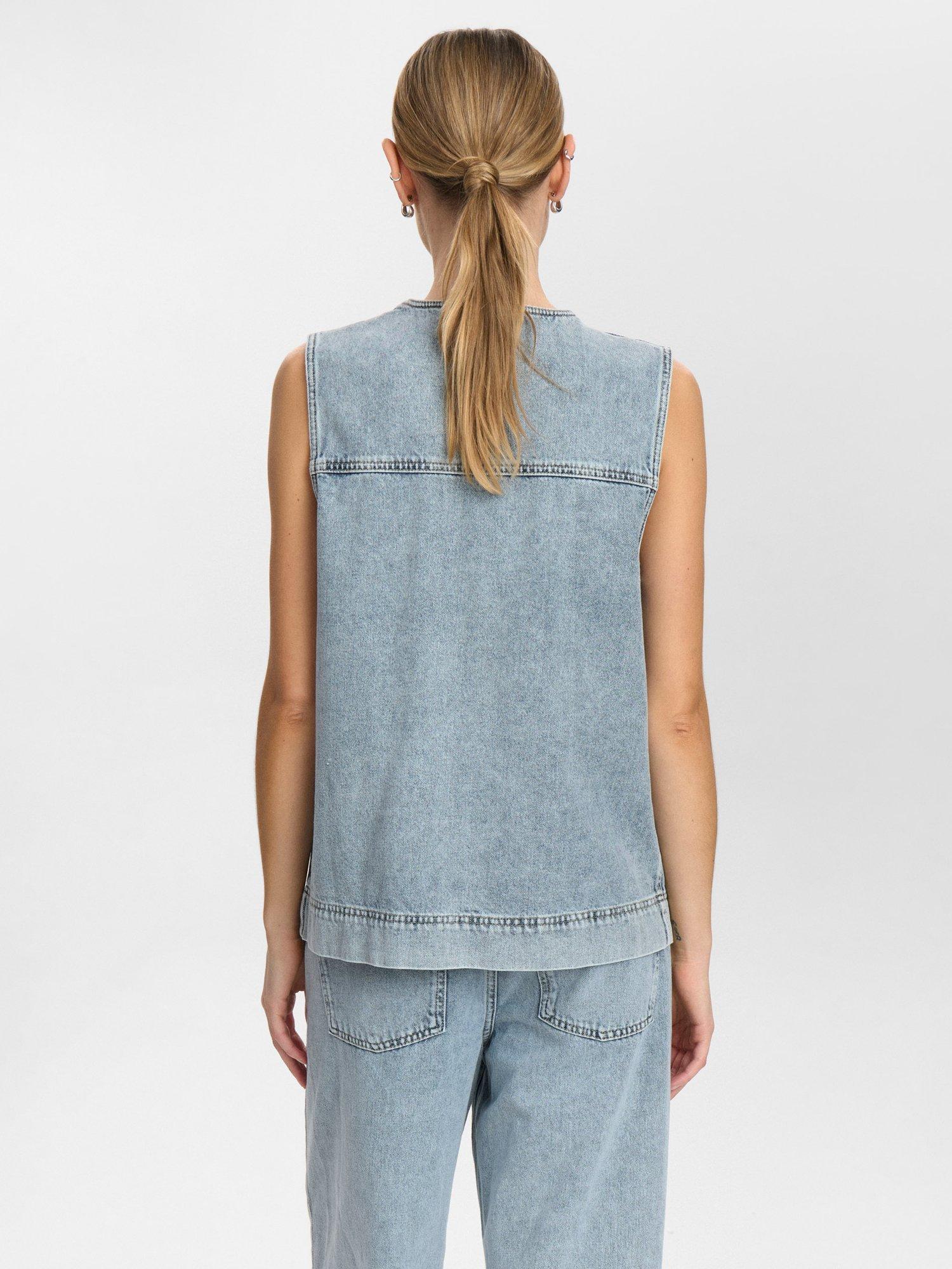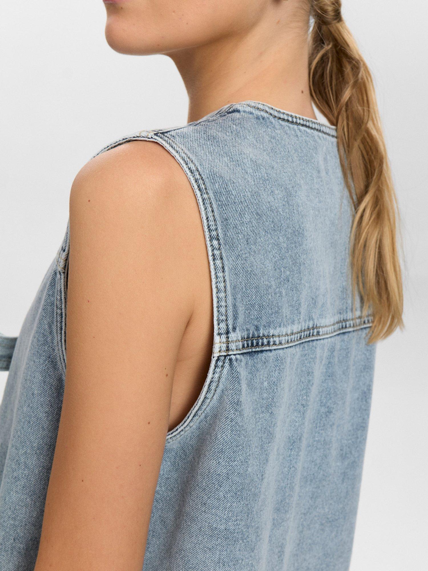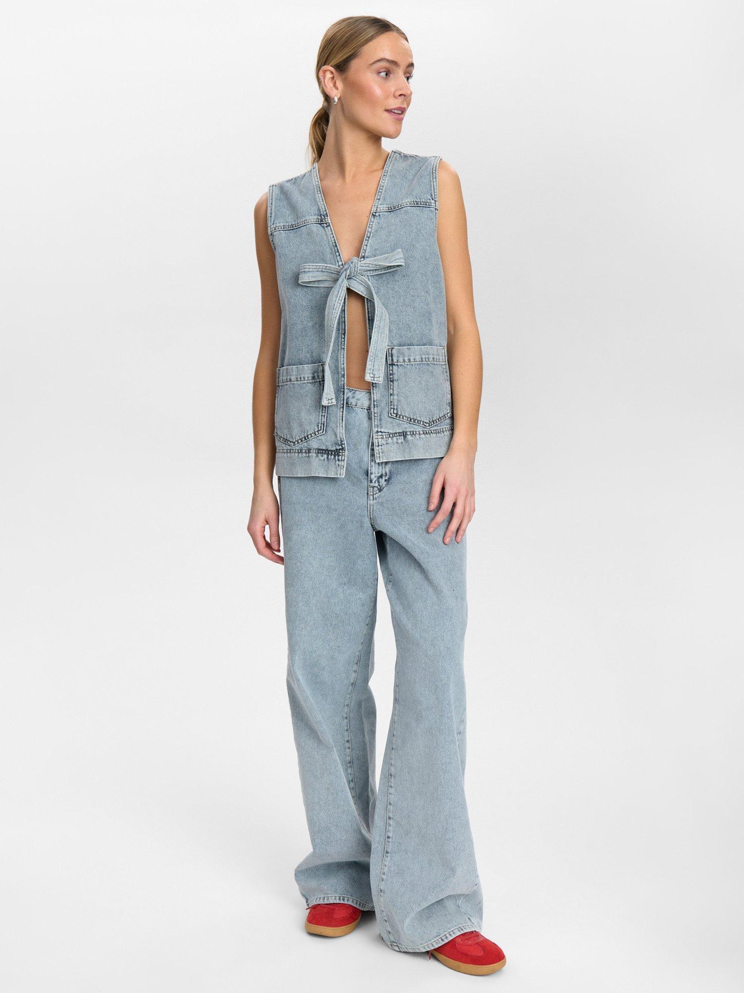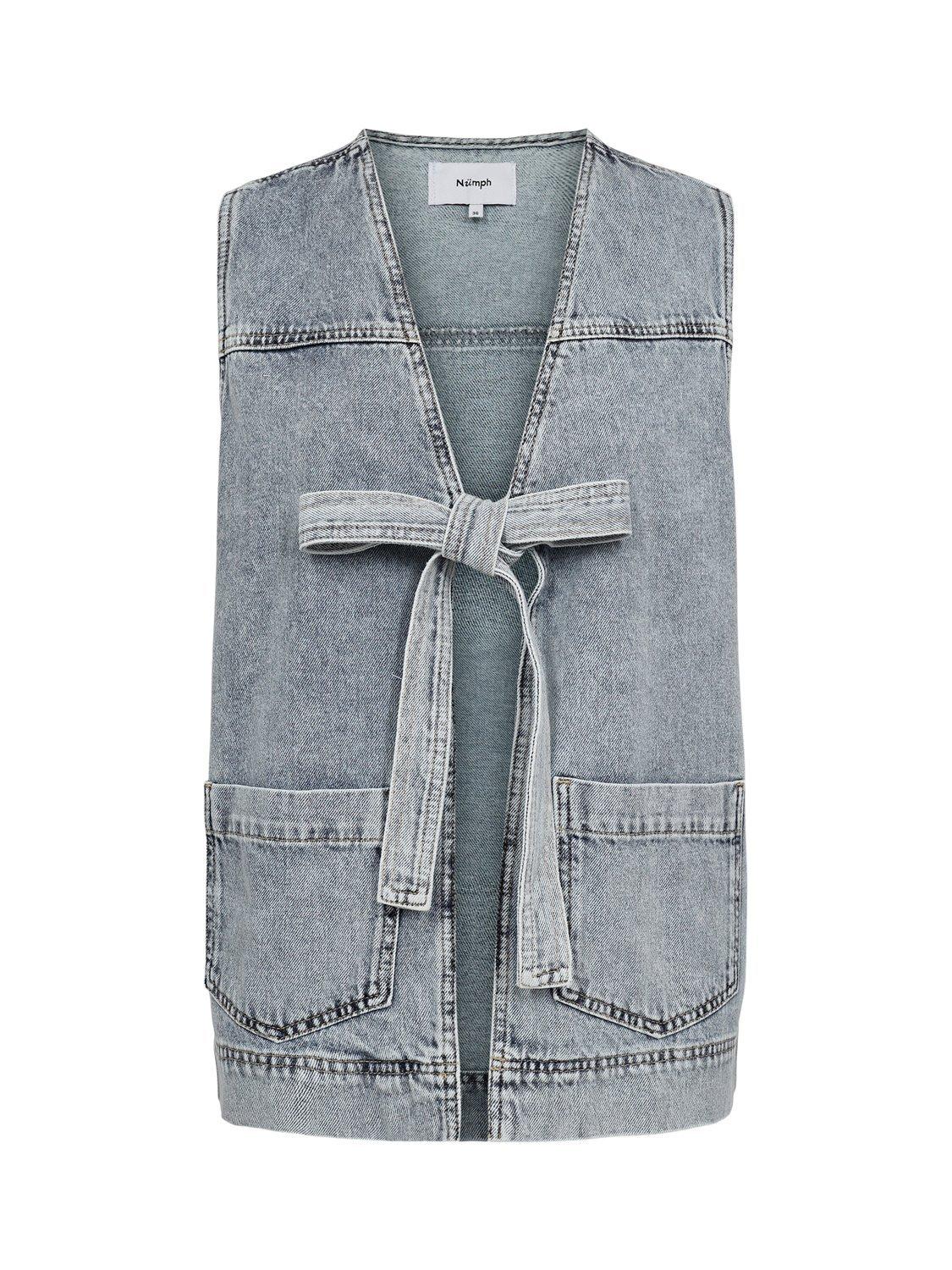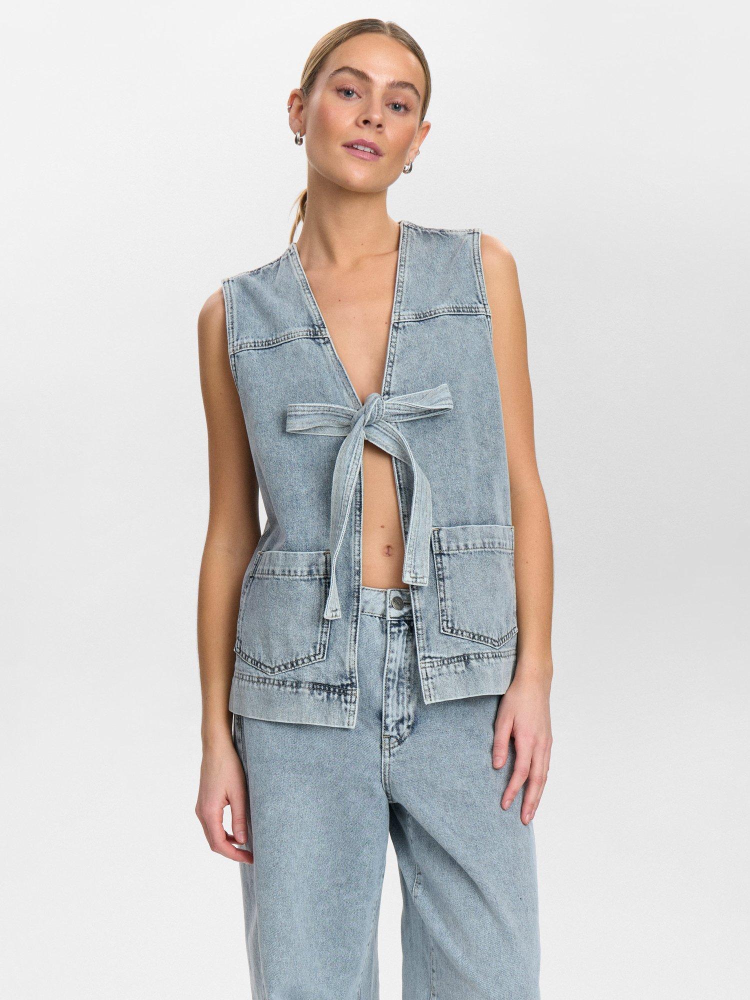 Nubrooklyn denim vest boasts two pockets and a feminine bow at the front to tie together. Pairable with everything, and even worn alone its an all-year-round piece.