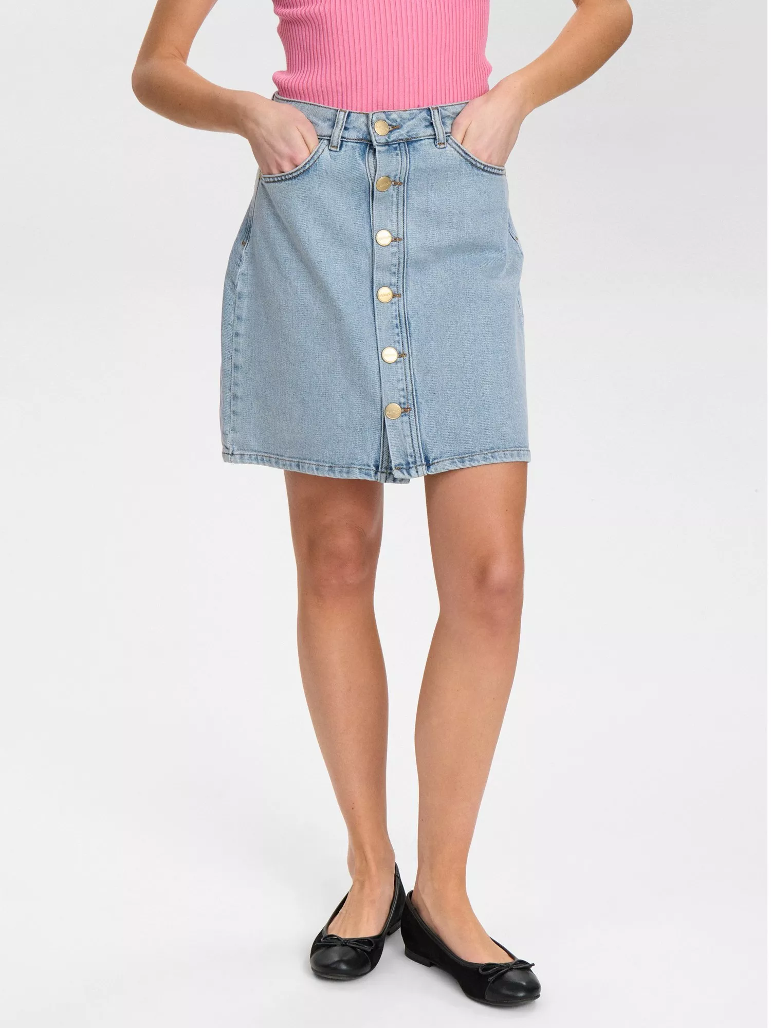 Now is the time to leave your jeans behind and embrace the denim skirt. Danish womenswear label Numph opts for an A-line shape and a button-down front with this piece, all so you can find the right fit.