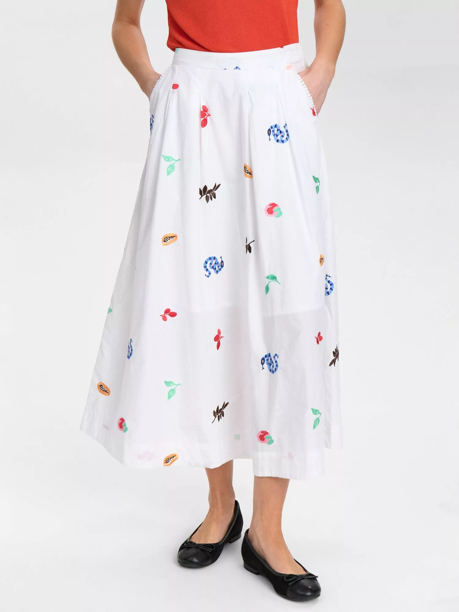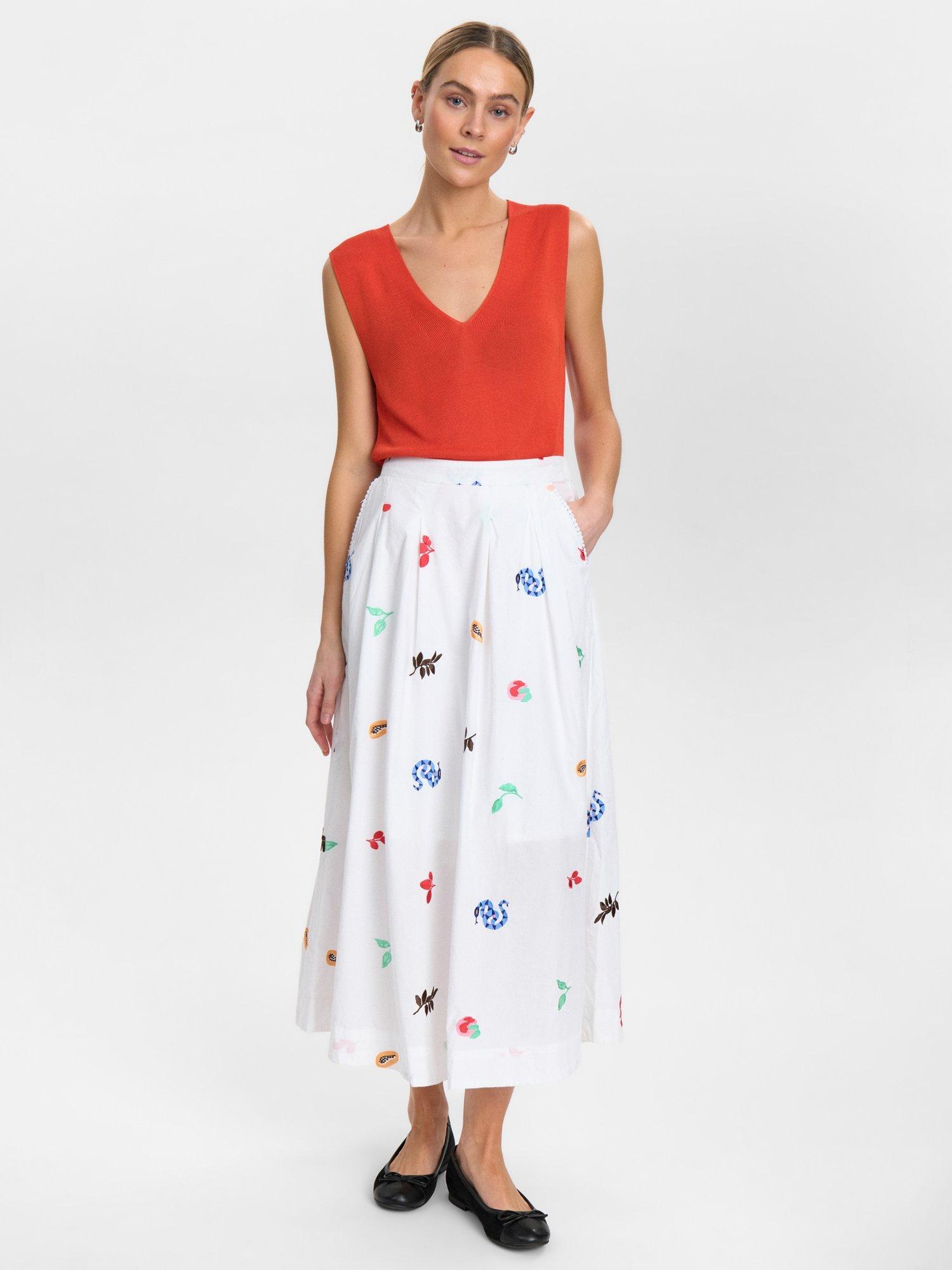Colourful motifs inspired by nature dominate Numph's Nuvalentine skirt, adding a dose of joy and playfulness to an established style.
