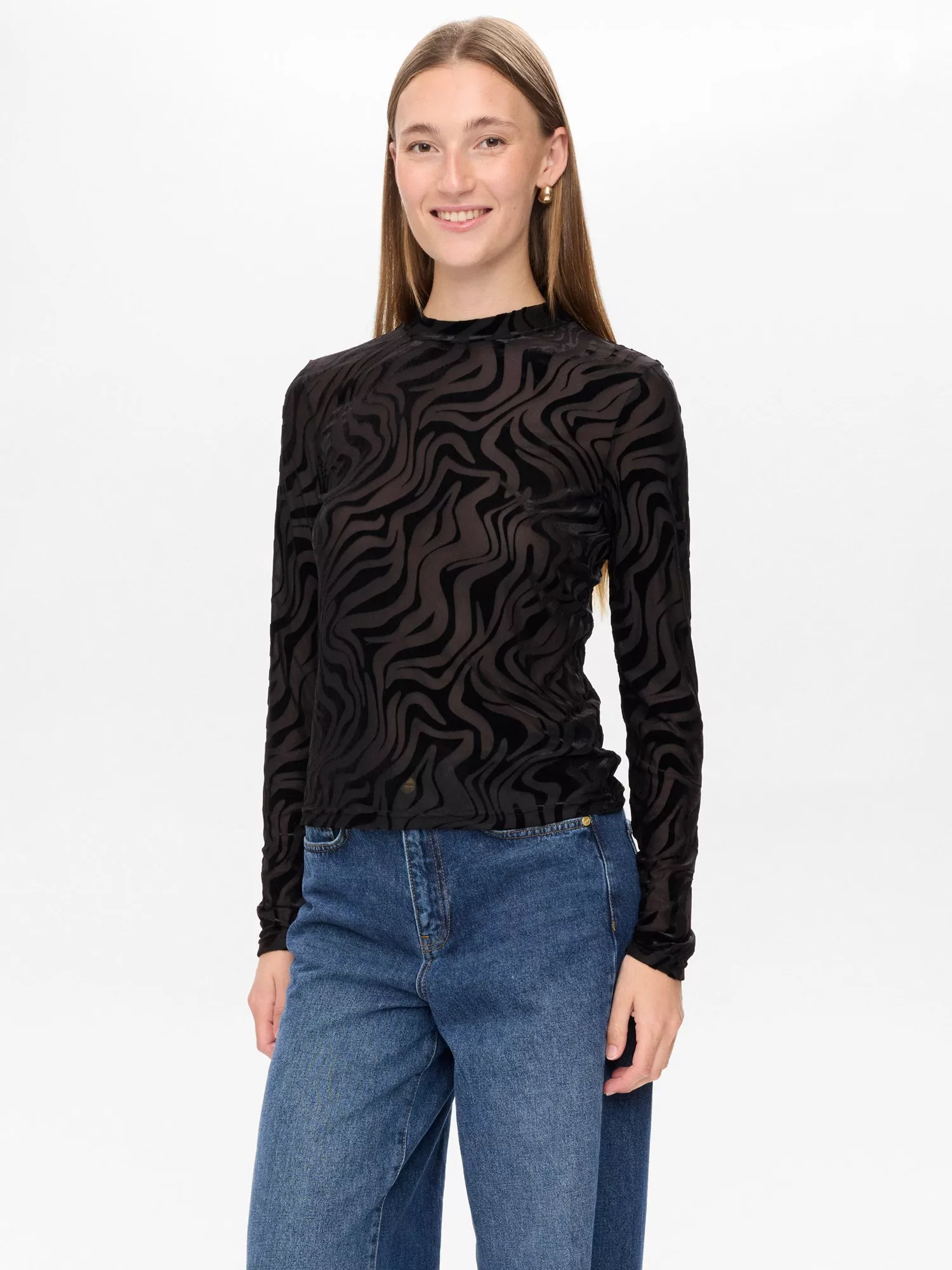 A sheer regular-length blouse from Numph. Cut with a round neck and long sleeves, it's designed with a playful pattern. Layer for work or wear solo for fun plans.