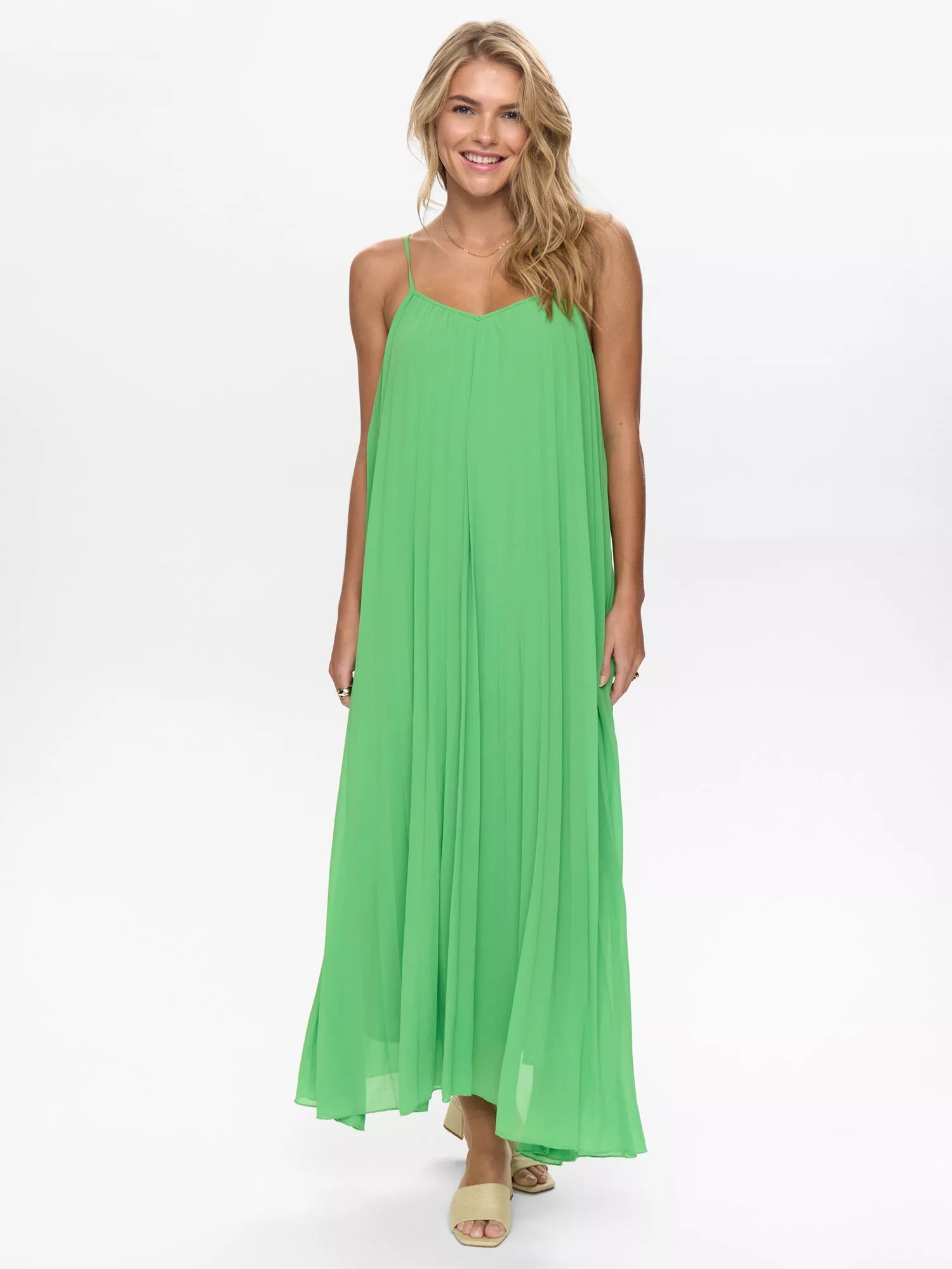 Because drapes are always flattering. This sleeveless maxi dress by Numph suspends from spaghetti straps and has plenty of movement.