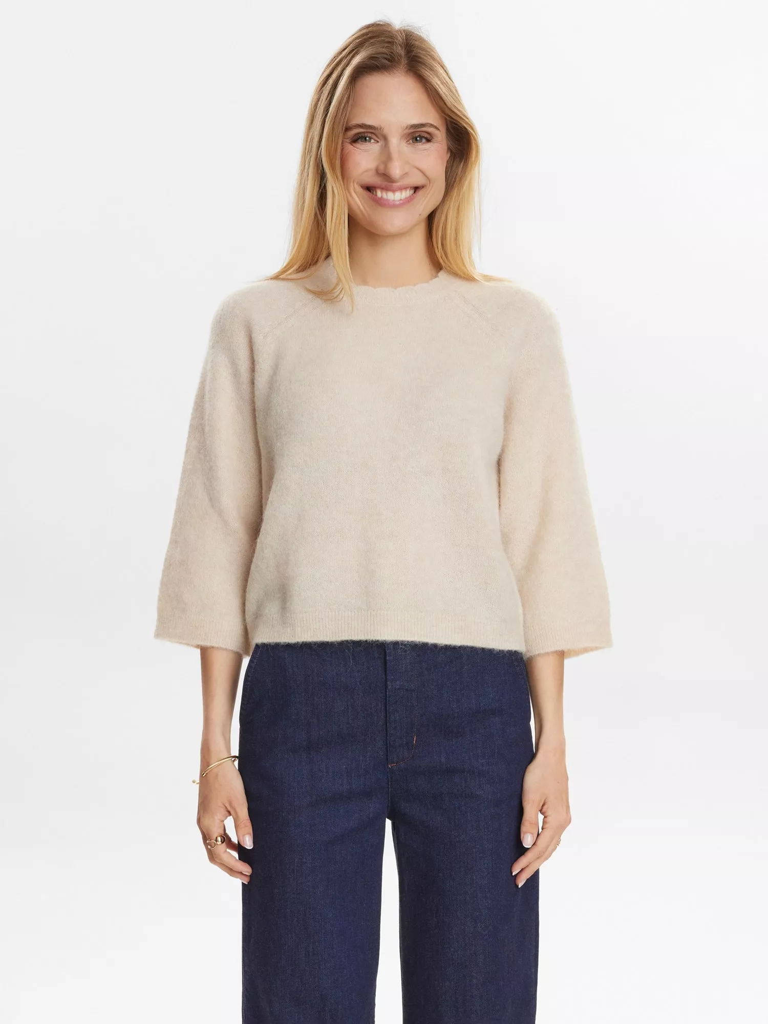 Numph’s jumper balances softness and style with a tactile wool blend and distinctive three-quarter sleeves. Its considered design brings a fresh angle to everyday dressing - easy to reach for, hard to forget, and always ready to express a bit of personality.