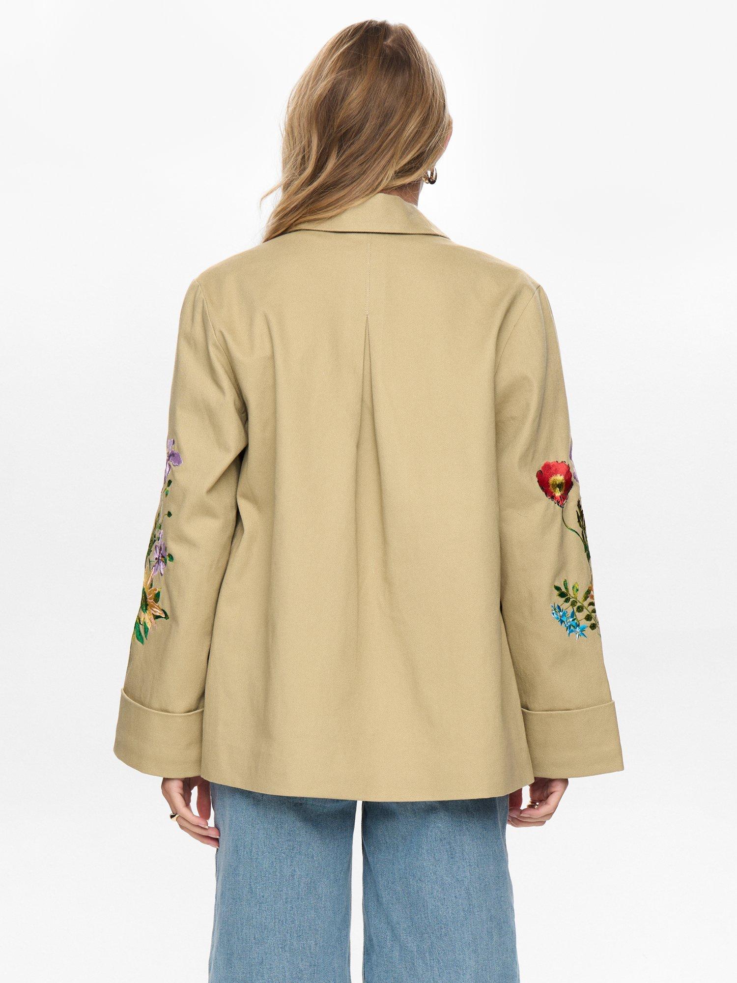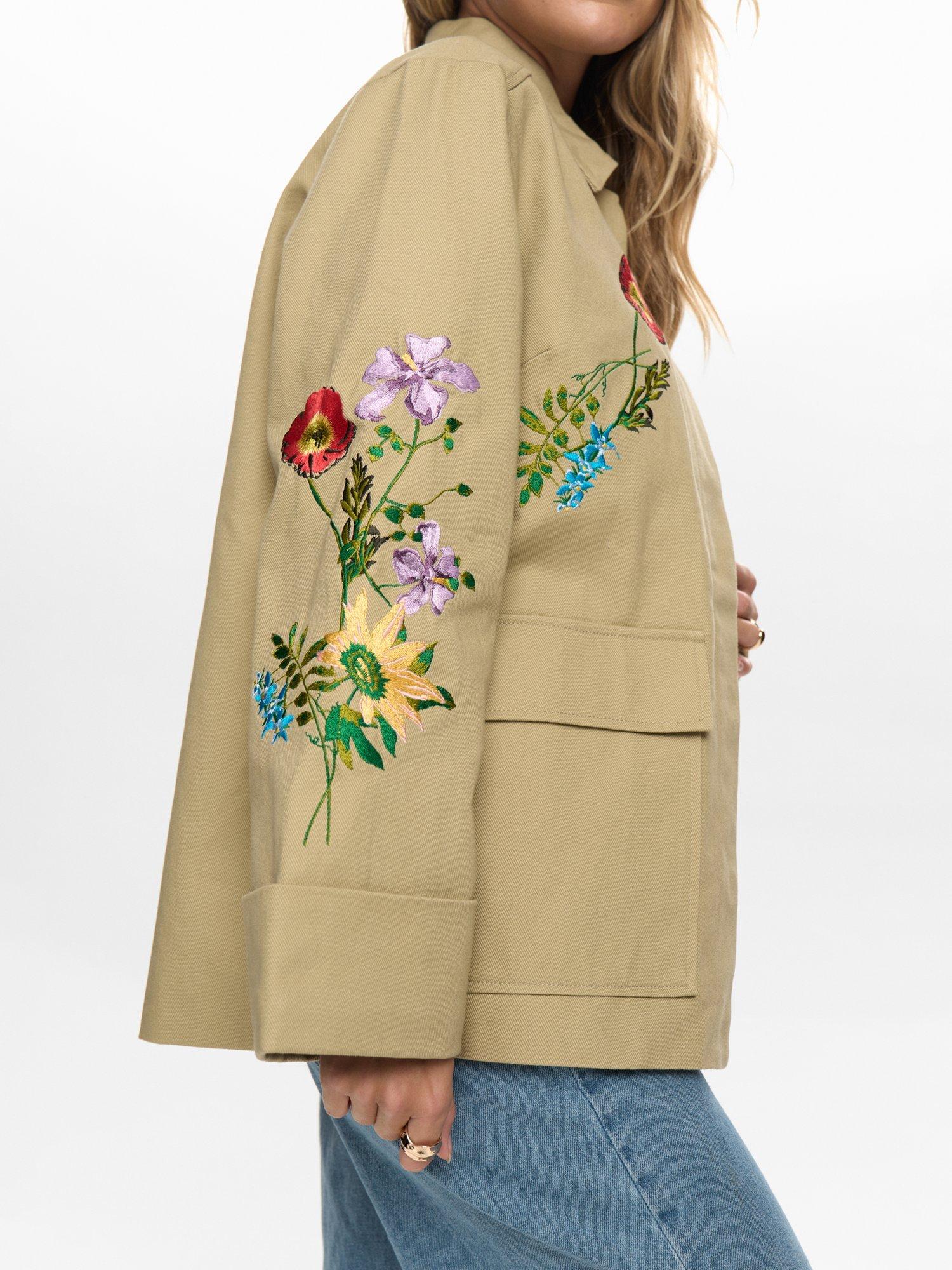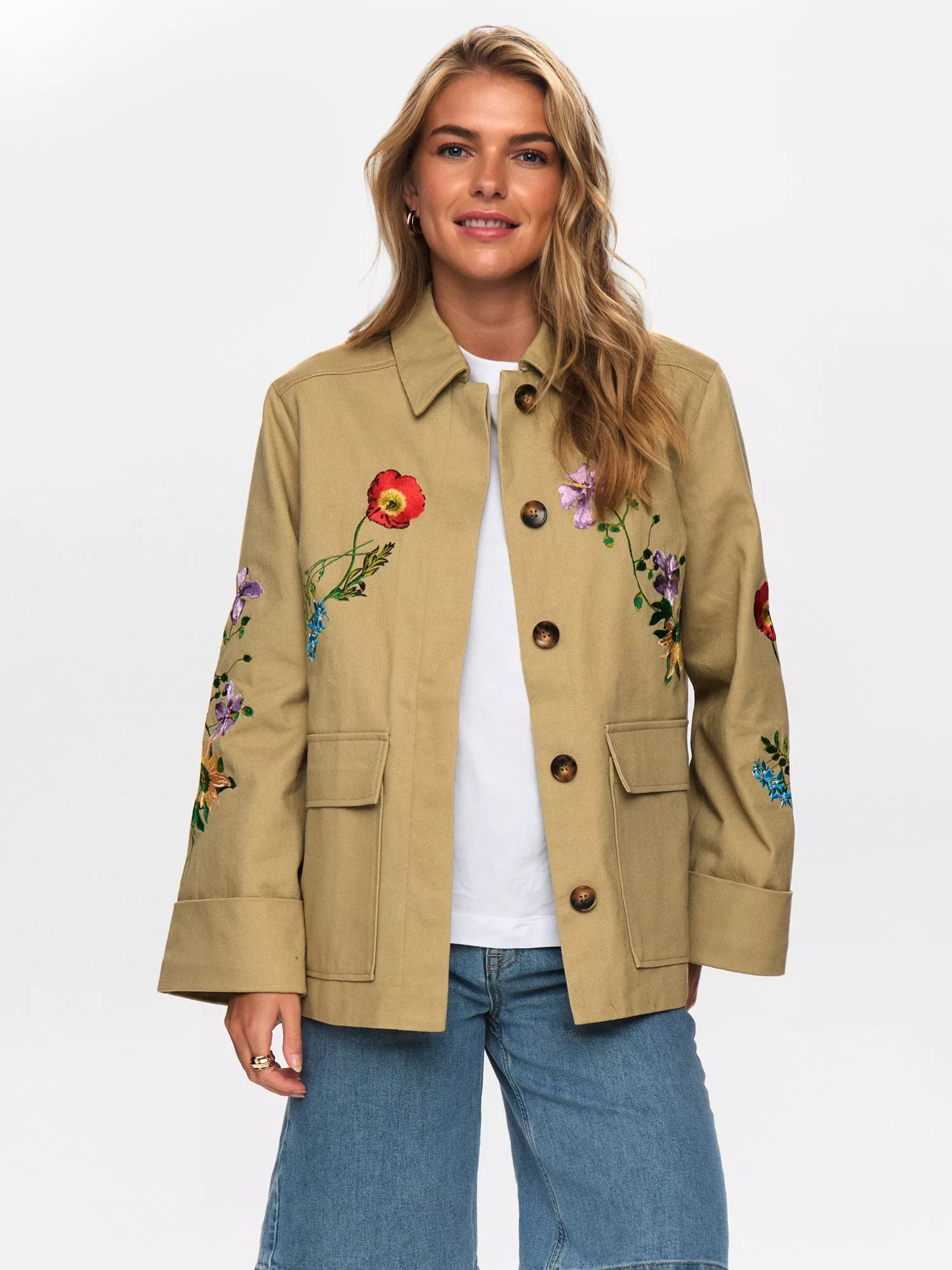 This floral jacket is easy to layer, lined for comfort and finished with a button neckline.