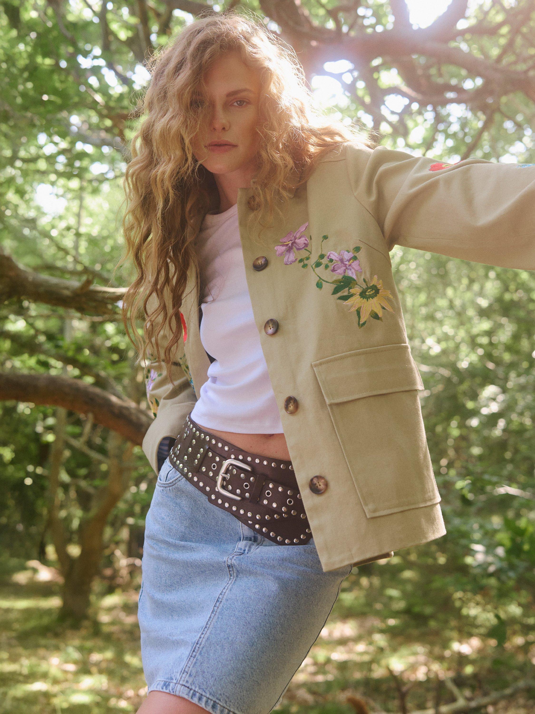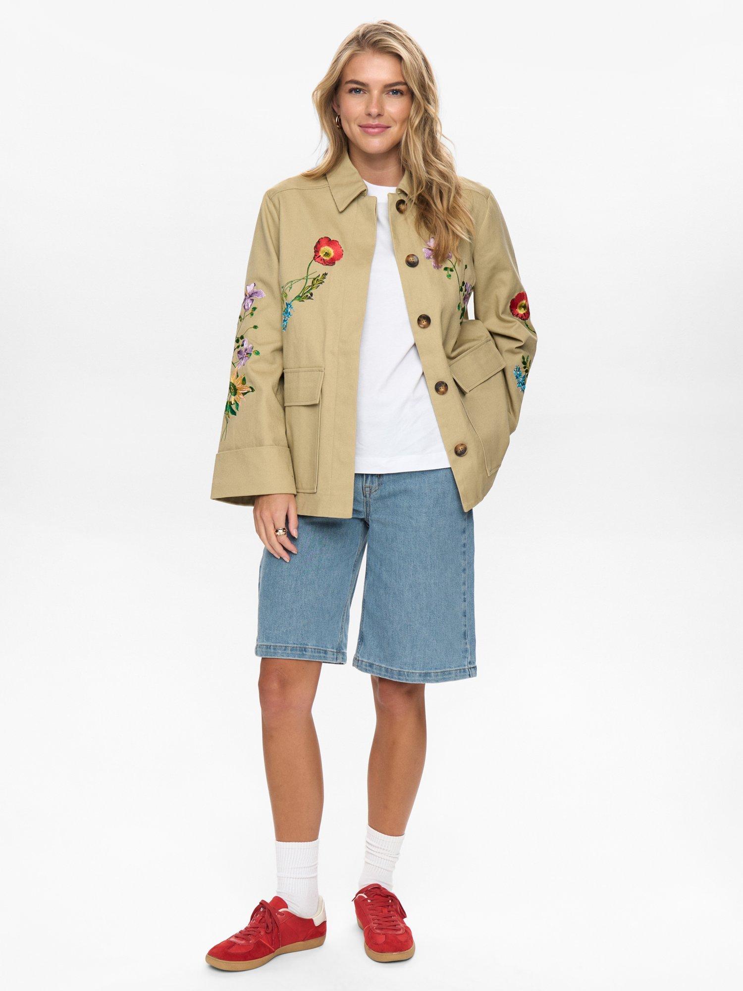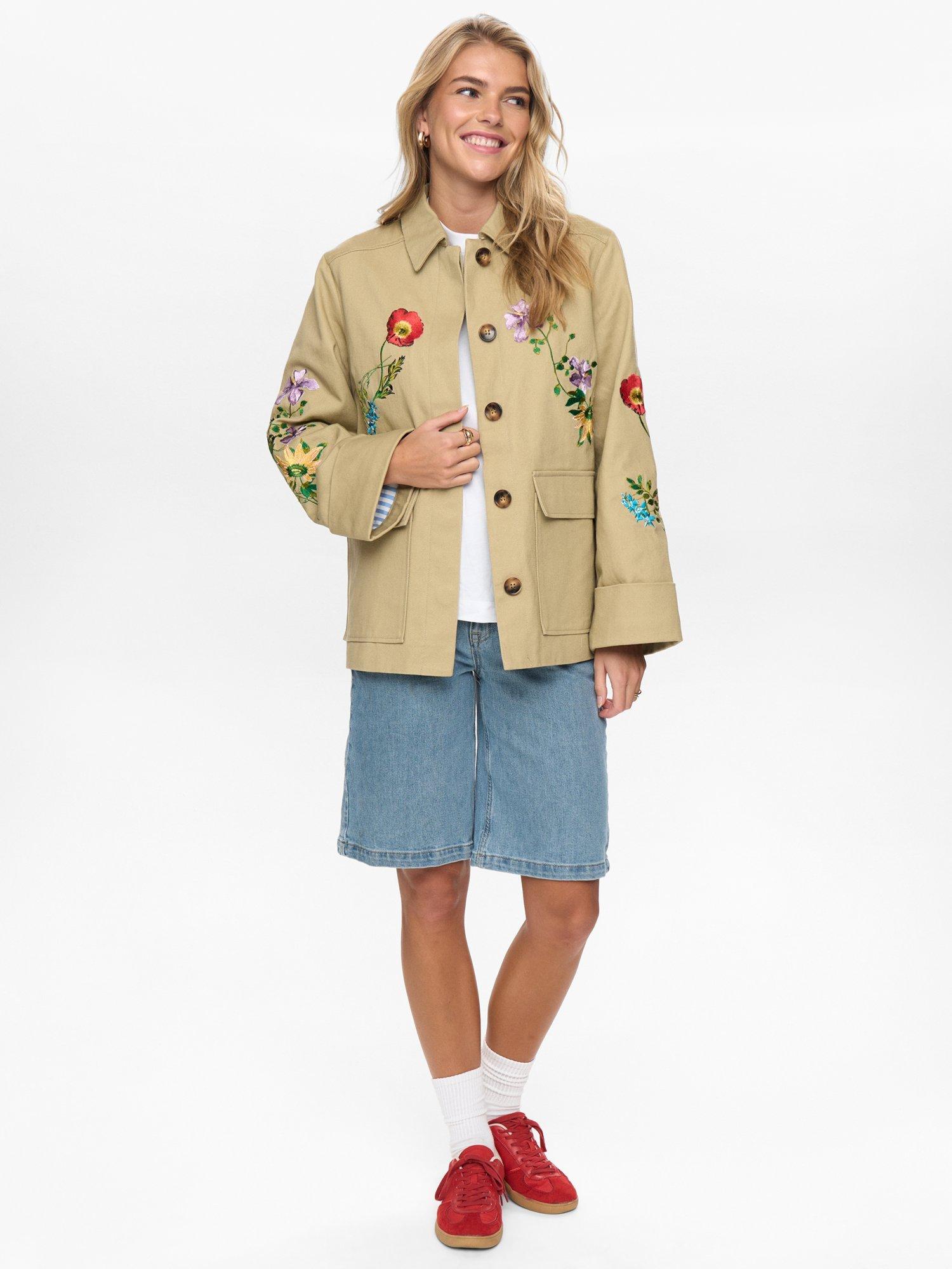 This floral jacket is easy to layer, lined for comfort and finished with a button neckline.