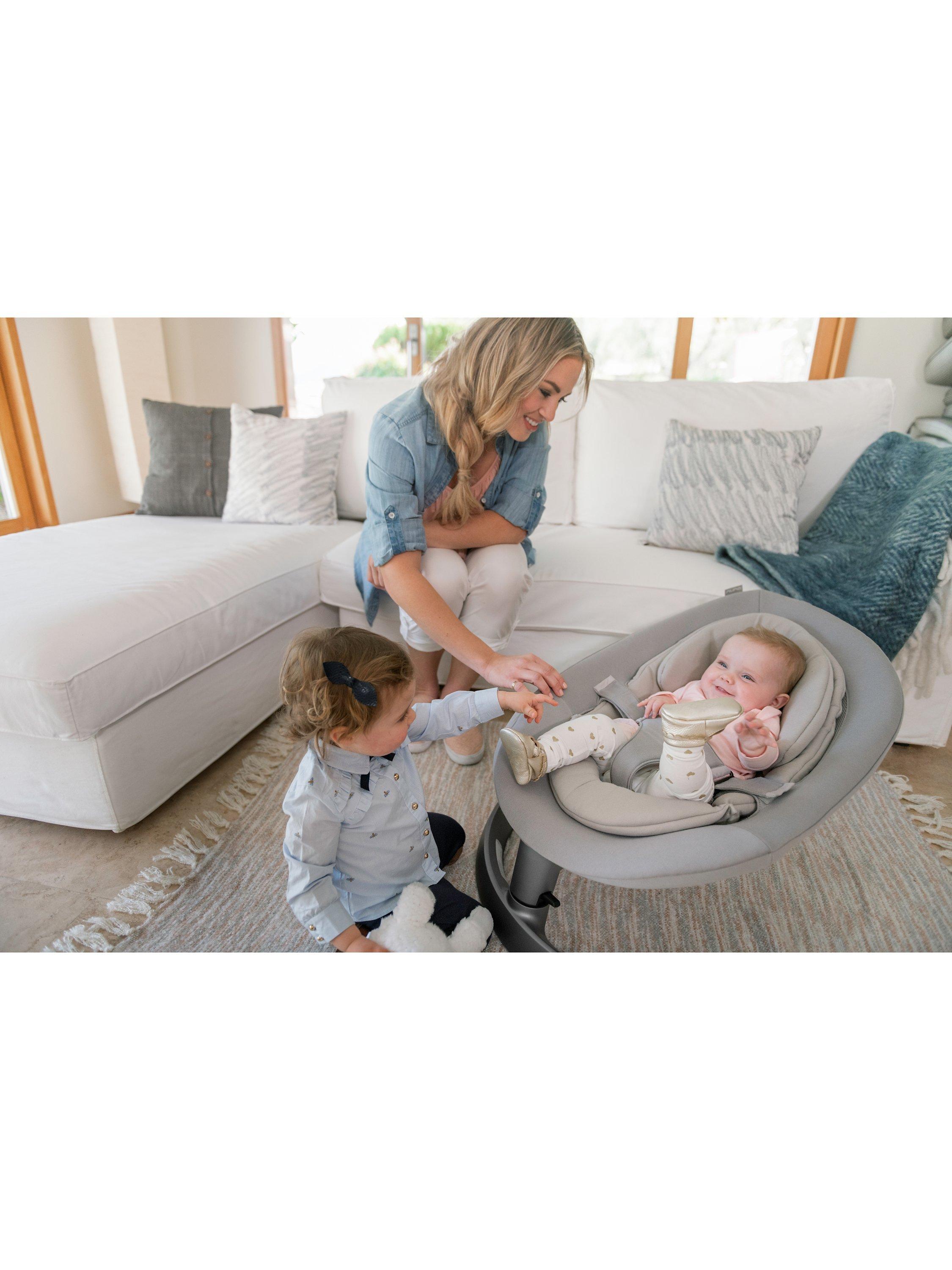 Inspired by the carefree float of a leaf on a breeze, the Nuna Leaf Grow baby rocker treats little ones to a similarly mesmerising ride. The distinctive design was invented from baby’s point of view for a motor-free, gentle side-to-side ride to newborn dreamland. It can also be locked in a stationary position for feeding or playtime.