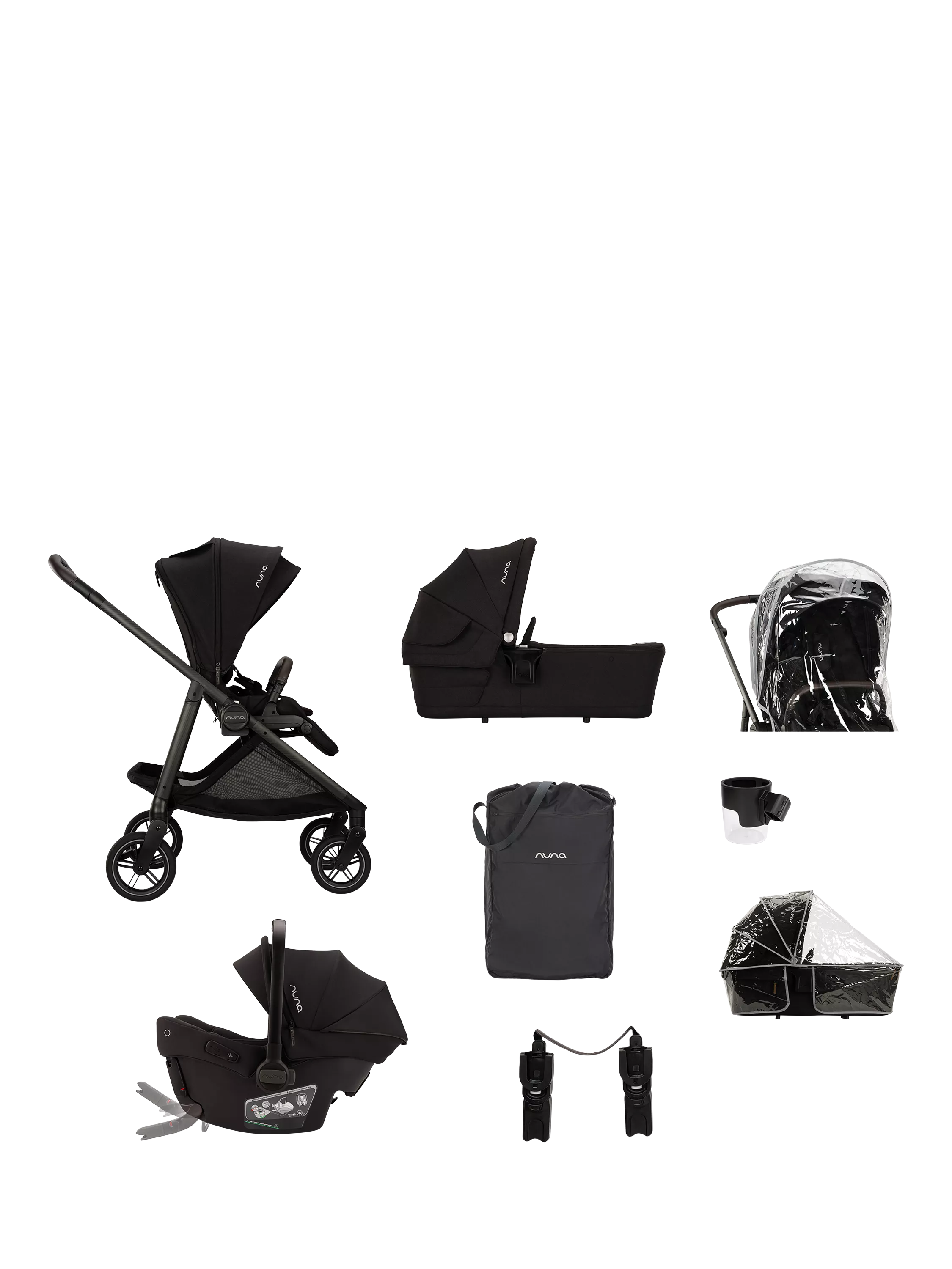 NunaSWIV Pushchair, LTYL Carrycot, PIPA Urbn Car Seat with Accessories Bundle, Caviar