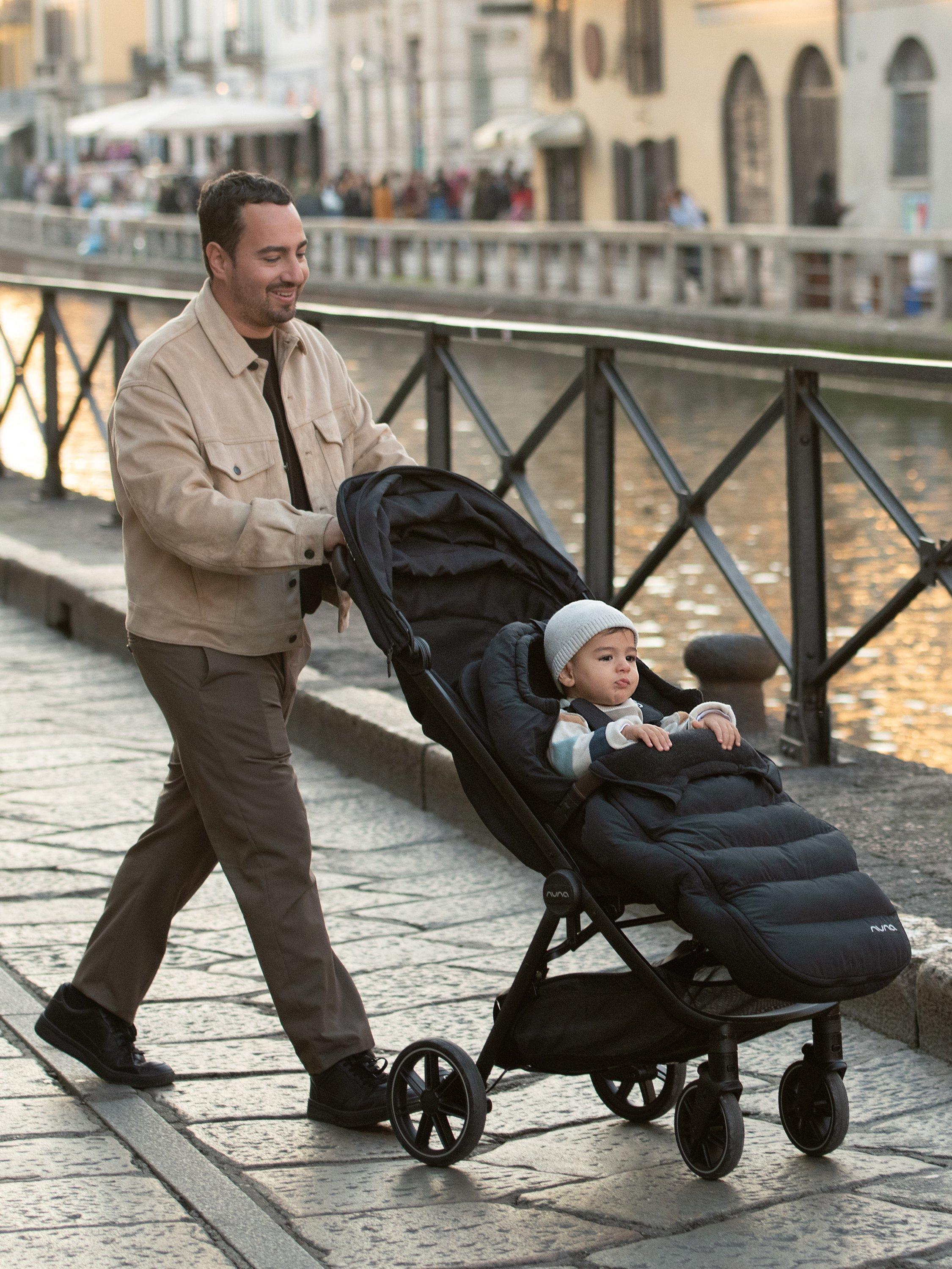 Consider them a warm, wearable hug as you go about your day together. The muff zips fully open for easy access to baby folds down and secures with magnets for warmer days. Compatible with all Nuna strollers.