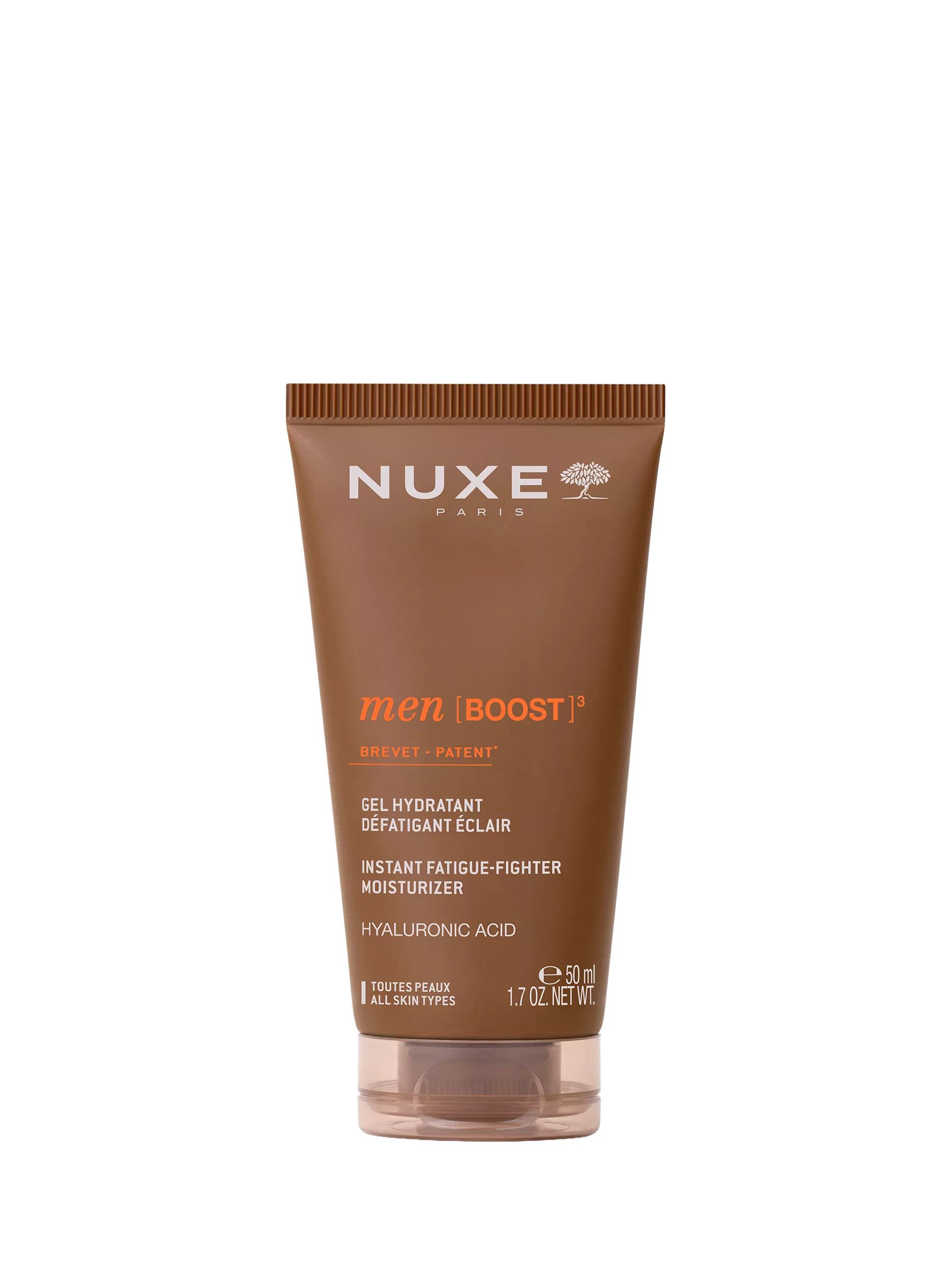 NUXE Men [BOOST]³, the expert range that combines effectiveness and sensoriality to reveal the full strength of your skin. It hydrates, energises, and protects your skin from external aggressions (wind, cold, pollution...) daily. Enriched with patented ash bark oleo-extract.