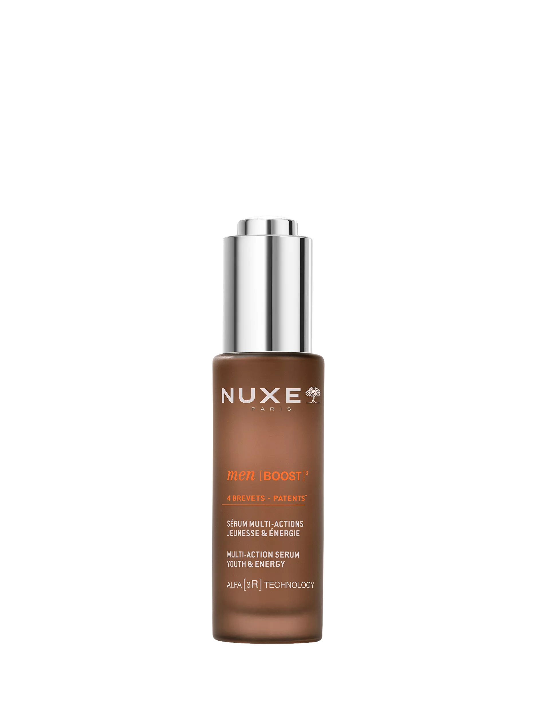 NUXE Men [BOOST]³, the expert range that combines effectiveness and sensoriality to reveal the full strength of your skin. Enriched with patented ash bark oleo-extract. Additionally, the ALFA [3R] TECHNOLOGY⁽¹⁾, more effective than retinol⁽²⁾, revitalises, renews, and resurfaces the skin.