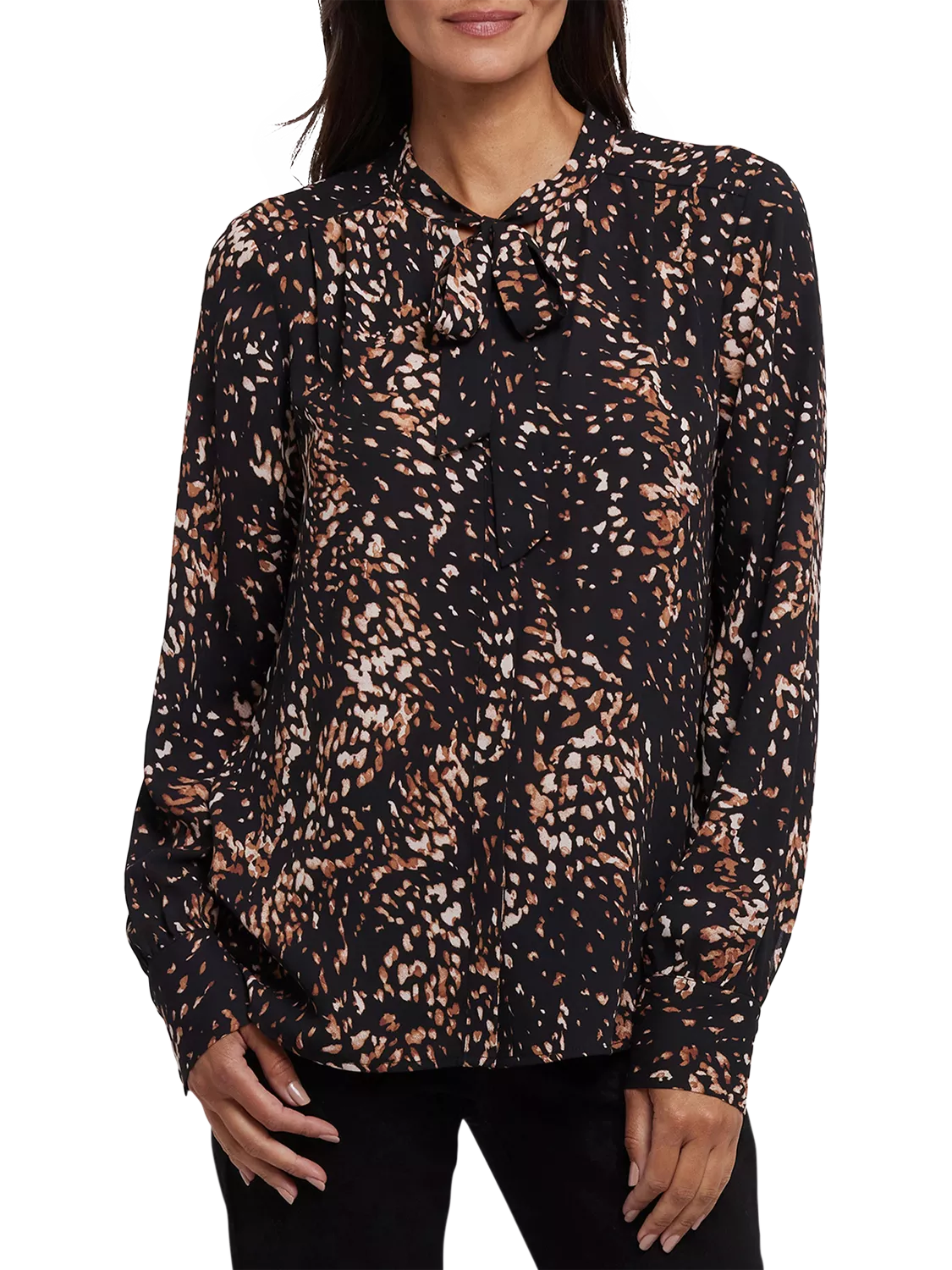 NYDJ's Tie-Neck Blouse makes an elegant statement. With its versatile neck tie that can be styled up or left down and its long blouson sleeves, this blouse exudes sophistication. Offering timeless style with a contemporary twist, this blouse effortlessly pairs with your favourite jeans or trousers for a chic and polished look.