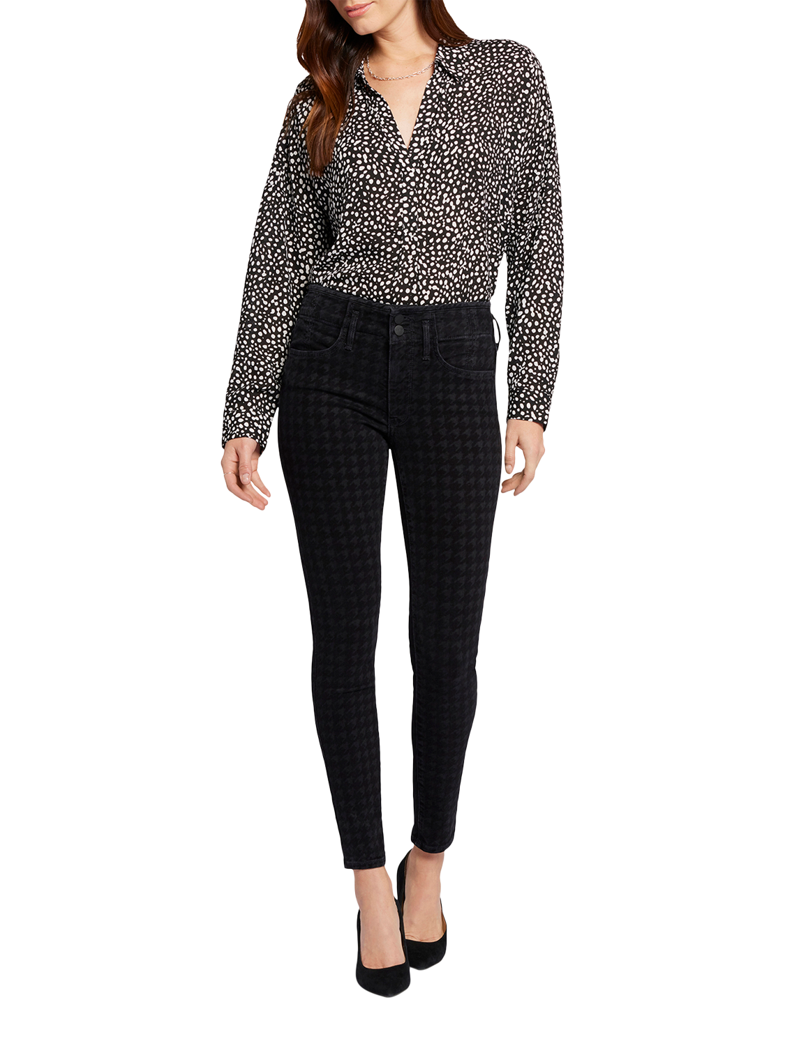 These flattering jeans offer a second-skin fit with stretch and comfort that’s second to none. In a Houndstooth Luxe Burnout finish, they're designed with NYDJ's Lift Tuck® Technology which helps to flatten the front by using a proprietary slimming panel with a patented criss-cross design. Finished with four-pocket styling, a zip fly and double button closures.
