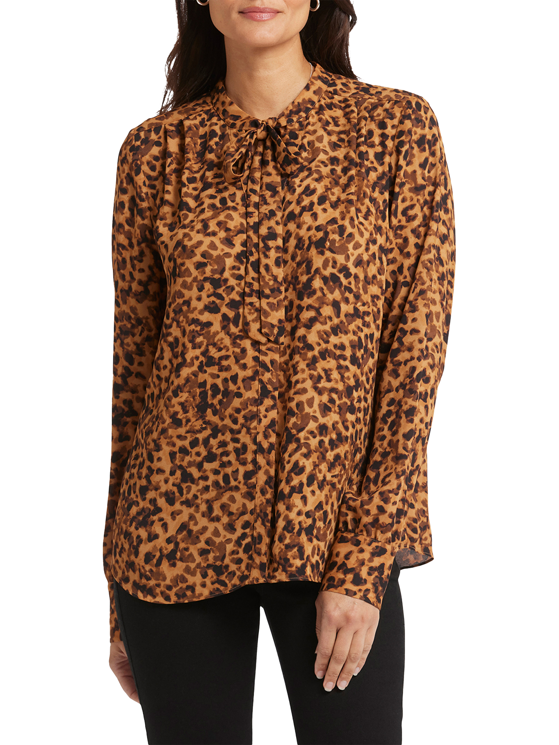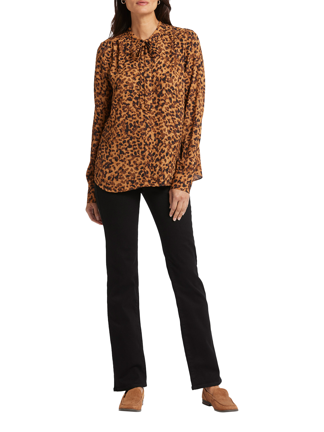 NYDJ's Tie-Neck Blouse makes an elegant statement. With its versatile neck tie that can be styled up or left down and its long blouson sleeves, this blouse exudes sophistication. Offering timeless style with a contemporary twist, this blouse effortlessly pairs with your favourite jeans or trousers for a chic and polished look.