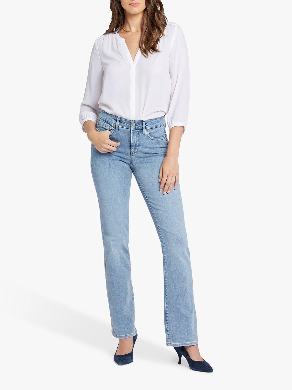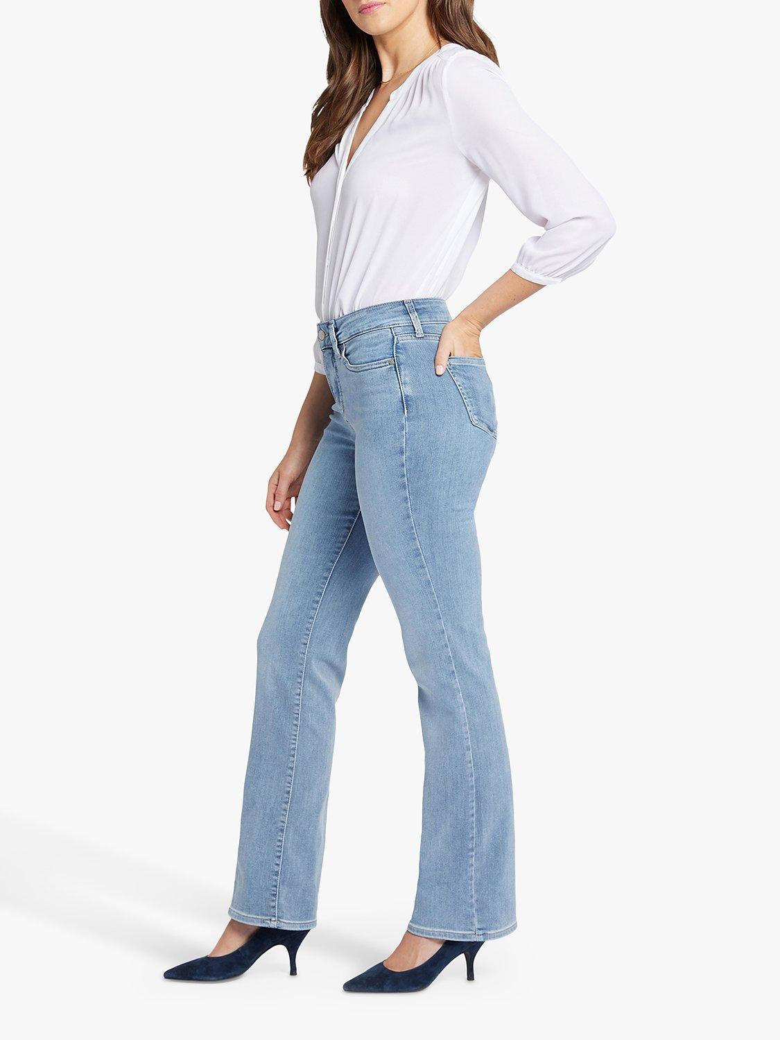 Effortlessly chic, NYDJ's Blake Slim Flared Jeans with High Rise have an elongated inseam, perfect for dressing up or down. This pair features a flattering slim leg that flares out at the hem for a bold statement. The Lift Tuck® Technology uses a proprietary slimming panel with a patented criss-cross design to shape and support your curves. Finished with five-pocket styling, zip fly and button closure.