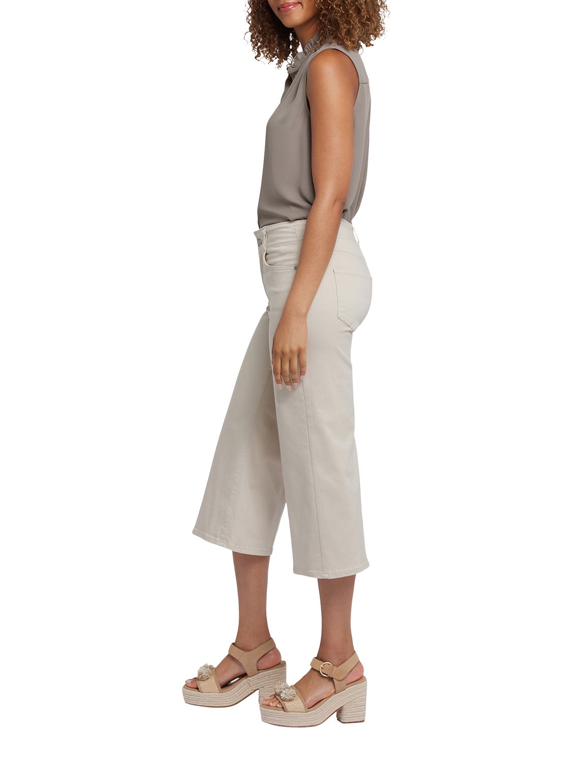 A major wide leg gives NYDJ's Brigitte Wide Leg Capri Jeans with High Rise a dramatic look, while body-hugging design through the waist and hips enhances your natural silhouette. Lift Tuck® Technology uses a proprietary slimming panel with a patented criss-cross design to shape and support your curves, providing a smoother fit in front and boosting in back. Features five-pocket styling with a welt coin pocket and a zip fly with button closure.