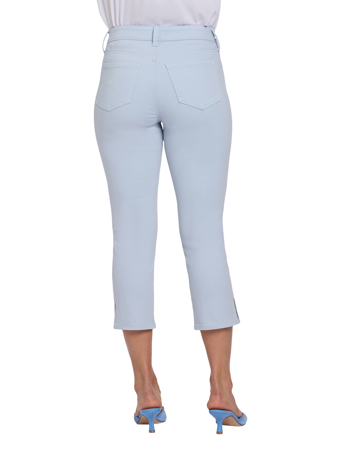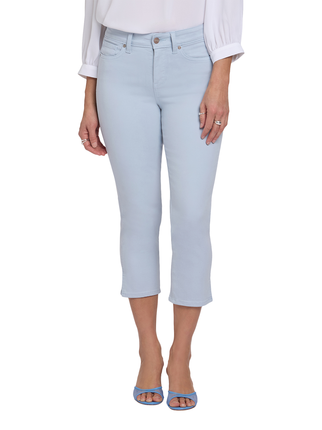 The Chloe Capri Jeans by NYDJ shape and enhance your curves in a slightly cropped silhouette that flatters from every angle. Cool Embrace® Denim makes hot days a breeze, using temperature-regulating technology to keep you cool and comfortable. Lift Tuck® Technology uses a proprietary slimming panel with a patented criss-cross design to give a smoother appearance. Features classic five-pocket styling, a zip fly with button closure and side slits at the hems.