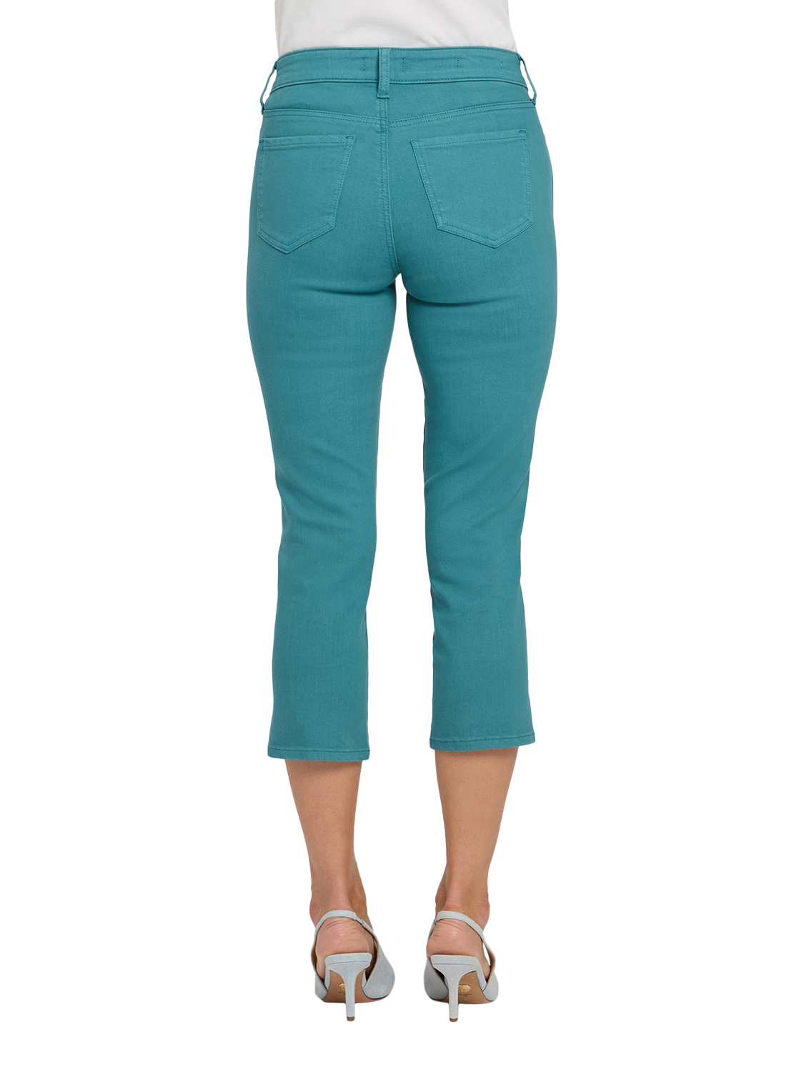 The Chloe Capri Jeans by NYDJ shape and enhance your curves in a slightly cropped silhouette that flatters from every angle. Cool Embrace® Denim makes hot days a breeze, using temperature-regulating technology to keep you cool and comfortable. Lift Tuck® Technology uses a proprietary slimming panel with a patented criss-cross design to give a smoother appearance. Features classic five-pocket styling, a zip fly with button closure and side slits at the hems.