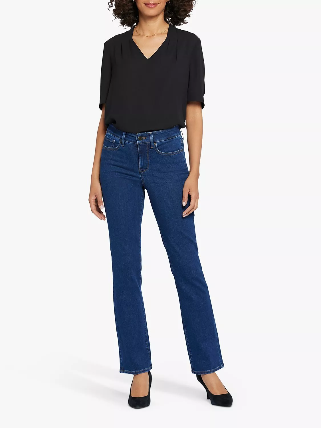 If you like the Marilyn Straight Jeans, you're sure to love the Ellison Straight Jeans by NYDJ. They feature a flattering high rise and a classic straight-leg silhouette similar to Marilyn's but with a slightly shorter inseam. The Lift Tuck® Technology uses a proprietary slimming panel with a patented criss-cross design to shape and support your curves. Features classic five-pocket styling, zip fly and button closure.