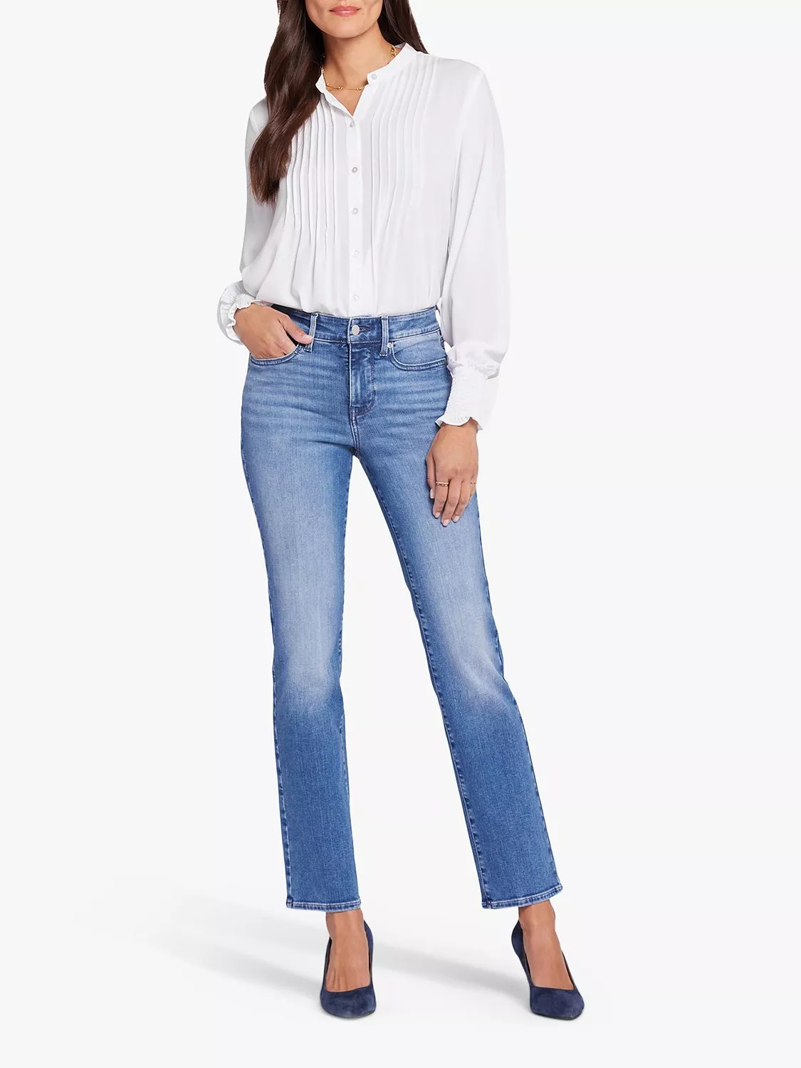 If you like the Marilyn Straight Jeans, you're sure to love the Ellison Straight Jeans by NYDJ. They feature a flattering high rise and a classic straight-leg silhouette similar to Marilyn's but with a slightly shorter inseam. The Lift Tuck® Technology uses a proprietary slimming panel with a patented criss-cross design to shape and support your curves. Features classic five-pocket styling, zip fly and button closure.