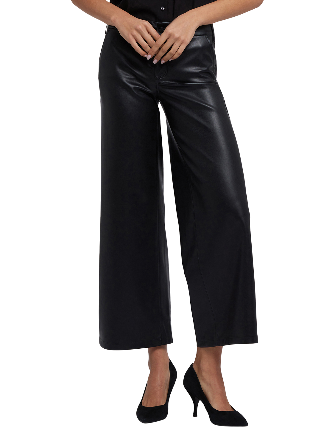 The Wide Leg Pants by NYDJ sculpt your curves and add sophistication to your style in premium lightweight compression vegan leather with comfortable stretch. Featuring a bold wide leg silhouette and a chic ankle length, they're finished with a zip fly, button closure, front slash pockets and back patch pockets. They're also made with our signature Lift Tuck® Technology, which uses a proprietary slimming panel with a patented criss-cross design to shape and support. This pant is part of Sculpt-Her™, NYDJ's most novel collection of compression-contouring silhouettes with an unparalleled, cutting-edge fit. IMPORTANT SIZING INFORMATION: Inseam: 29", Front Rise: 10", Back Rise: 16", Knee: 24", Leg Opening: 24" - Measurements taken on a UK size 10. NYDJ TROUSERS WILL FEATURE US SIZE LABELS IN THE GARMENT BUT ARE DISPLAYED HERE WITH EQUIVALENT UK SIZING. SELECT ONE SIZE SMALLER FOR THE PERFECT FIT.