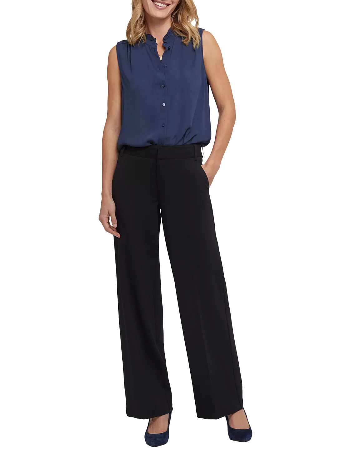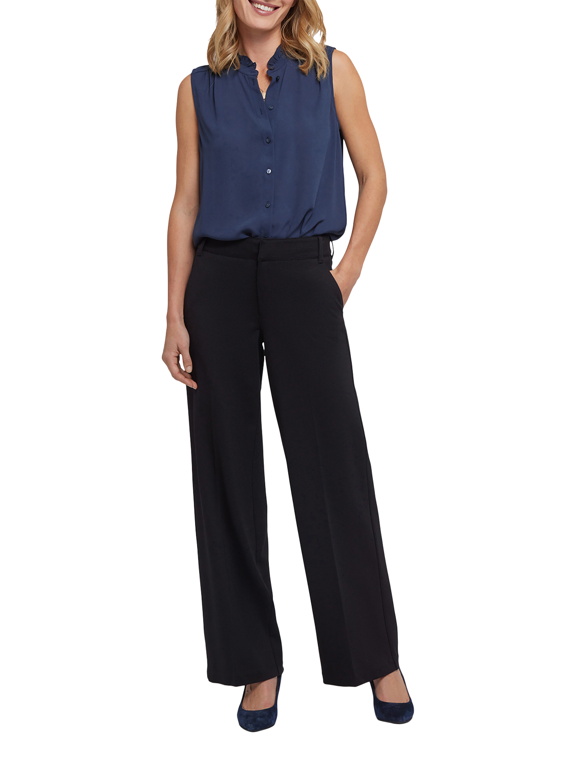 A moderate wide leg and smart tailored details make the Fiona Pants perfect for the office and beyond. Soft and comfortable in curve-sculpting Ponte knit, they feature a flattering high rise and elongating centre leg creases in the front and back. Finished with a zip fly, a hook-and-eye waist, front slash pockets and non-functional back welt pockets. IMPORTANT SIZING INFORMATION: Inseam: 32", Front Rise: 10.75", Back Rise: 16.5", Knee: 22.5", Leg Opening: 22.5" - Measurements taken on a UK size 10. NYDJ TROUSERS WILL FEATURE US SIZE LABELS IN THE GARMENT BUT ARE DISPLAYED HERE WITH EQUIVALENT UK SIZING. SELECT ONE SIZE SMALLER FOR THE PERFECT FIT.
