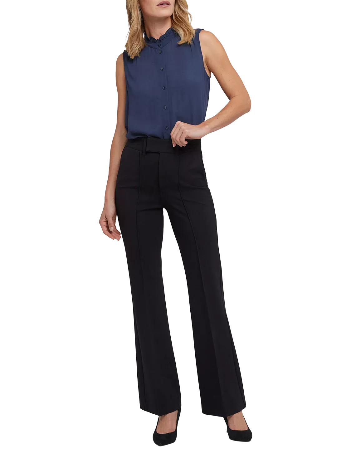 Super sculpting in compression Ponte yet incredibly comfortable, NYDJ's High Rise Bootcut Pants are a work-to-weekend essential. Their trouser styling, with front slash pockets, back welt pockets and leg seaming and creasing, gives them a smart, polished appearance. Our signature Lift Tuck® Technology keeps them streamlined and flattering using a proprietary slimming panel with a patented criss-cross design. Finished with a zip fly and a hook-and-eye waist. These pants are part of Sculpt-Her™, a collection of compression-contouring essentials with an unparalleled, cutting-edge fit. IMPORTANT SIZING INFORMATION: Inseam: 32", Front Rise: 12", Back Rise: 16.25", Knee: 18", Leg Opening: 22" - Measurements taken on a UK size 10. NYDJ TROUSERS WILL FEATURE US SIZE LABELS IN THE GARMENT BUT ARE DISPLAYED HERE WITH EQUIVALENT UK SIZING. SELECT ONE SIZE SMALLER FOR THE PERFECT FIT.