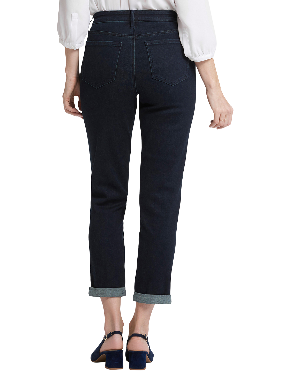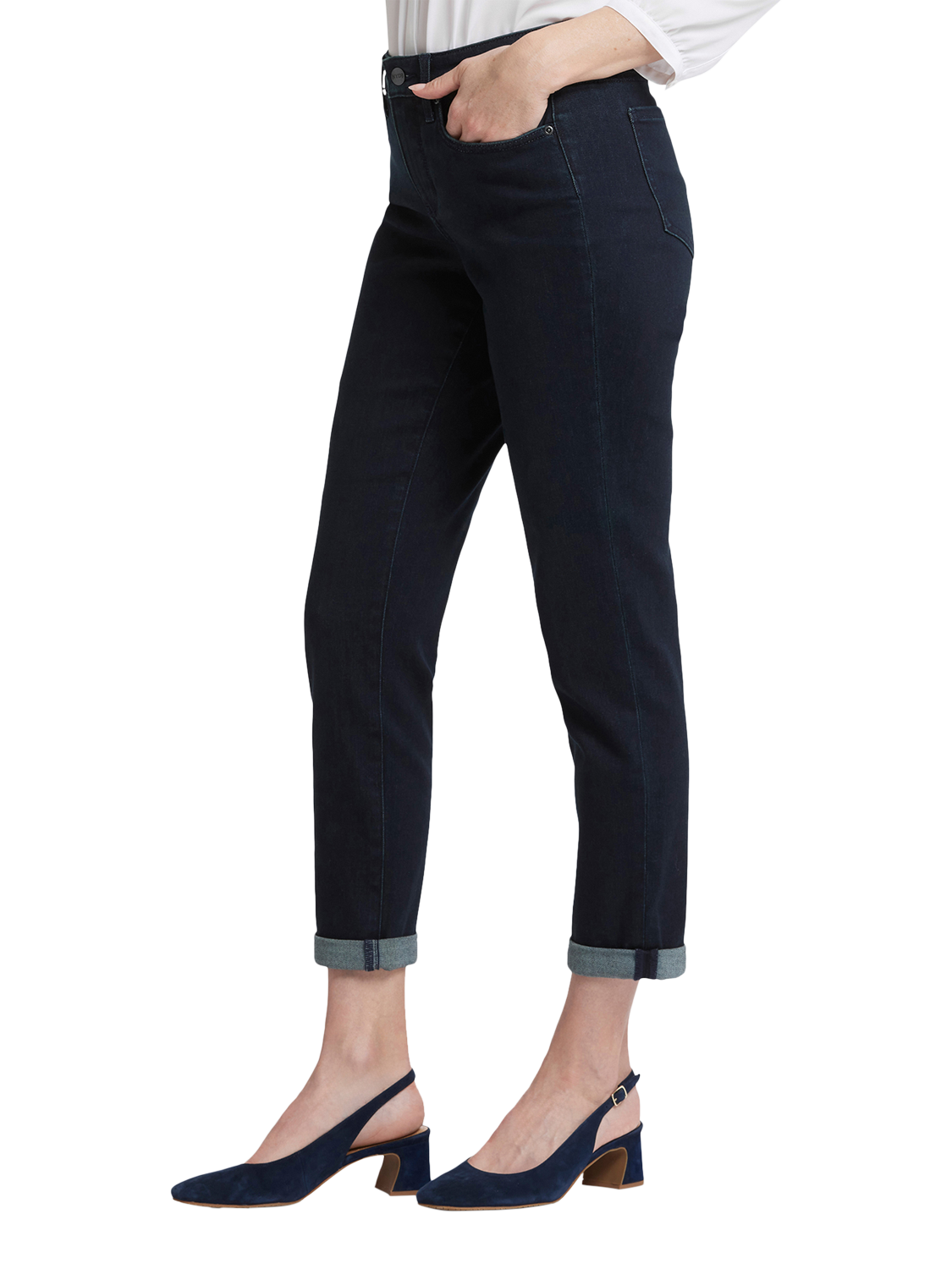 That perfect relaxed denim fit you've been looking for? It's here, in the Margot Girlfriend Jeans by NYDJ. Their just-slouchy-enough cut is slimmer (and more slimming) than a boyfriend jean while maintaining a laid-back looseness through the leg. Our signature Lift Tuck® Technology makes the fit extra flattering by using a patented criss-cross design inside to shape and support your curves. Features a zip fly with button closure, classic five-pocket styling and adjustable rolled cuffs.