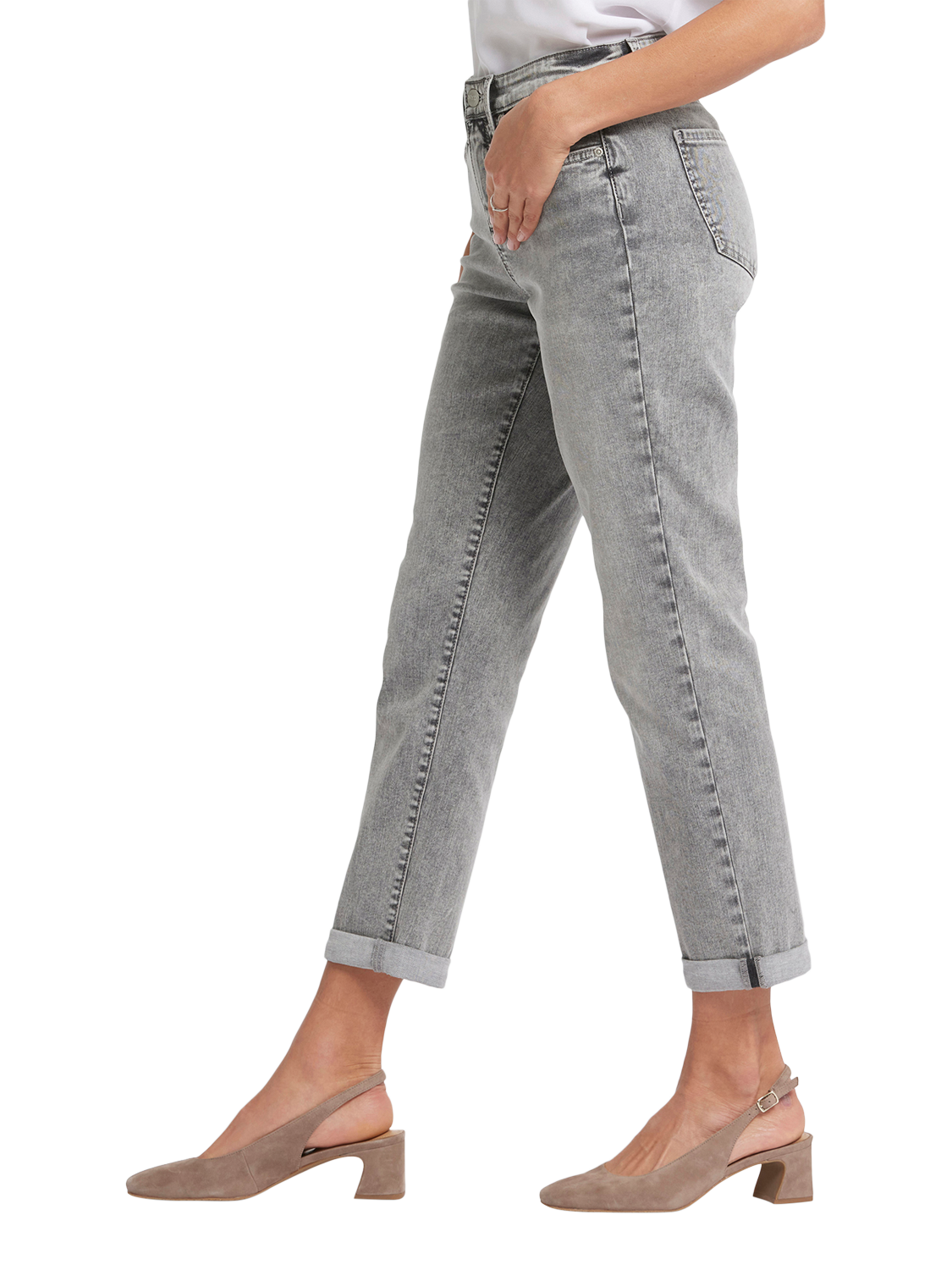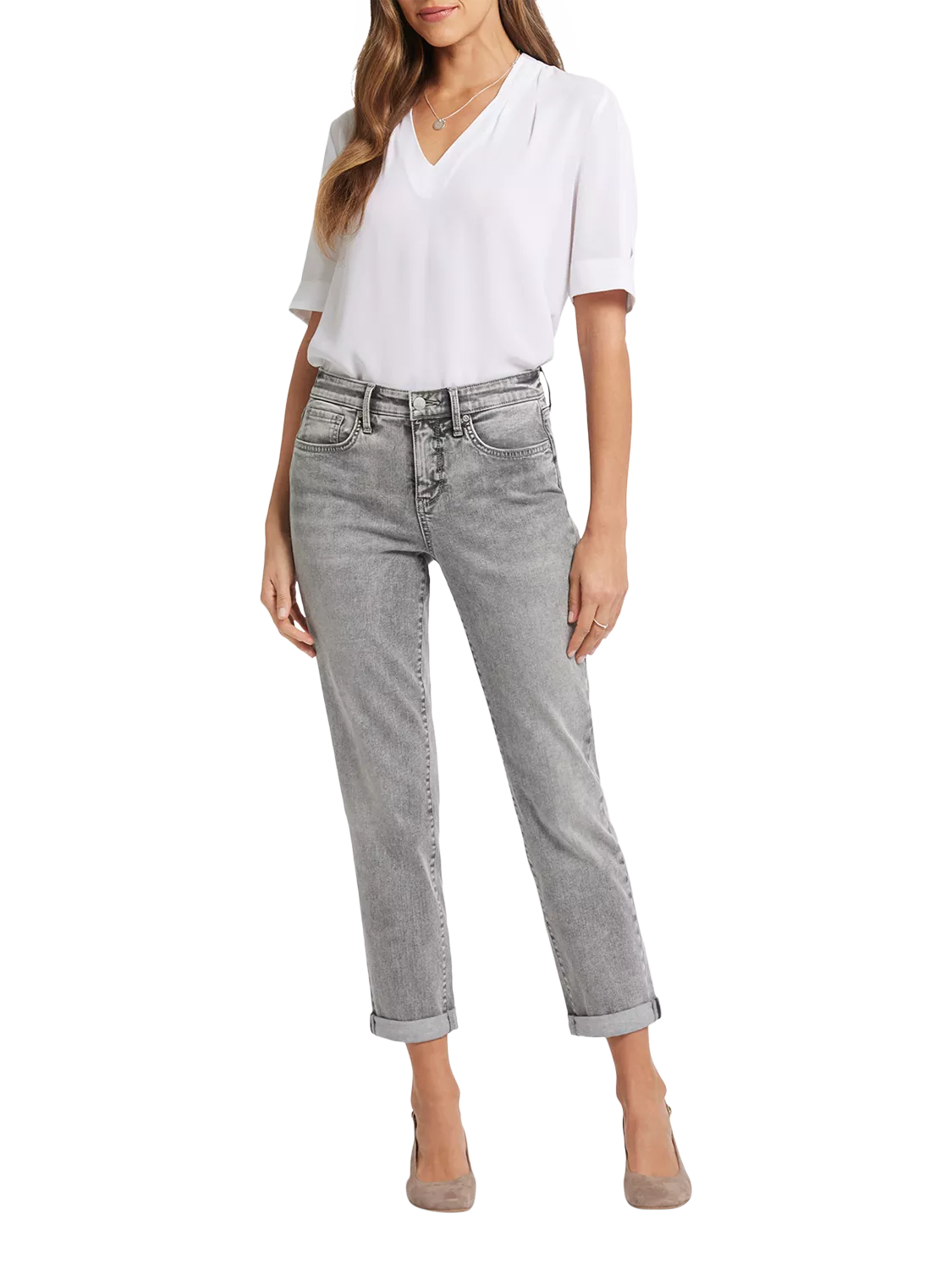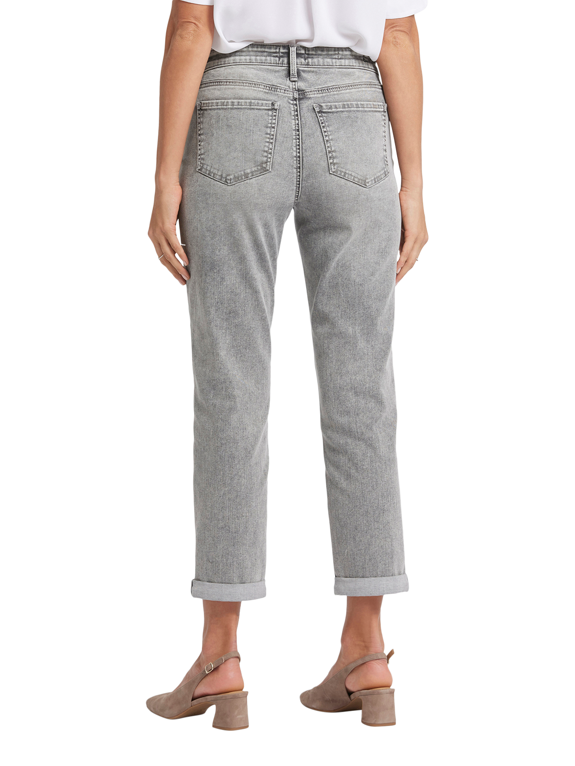That perfect relaxed denim fit you've been looking for? It's here, in the Margot Girlfriend Jeans by NYDJ. Their just-slouchy-enough cut is slimmer (and more slimming) than a boyfriend jean while maintaining a laid-back looseness through the leg. Our signature Lift Tuck® Technology makes the fit extra flattering by using a patented criss-cross design inside to shape and support your curves. Features a zip fly with button closure, classic five-pocket styling and adjustable rolled cuffs.