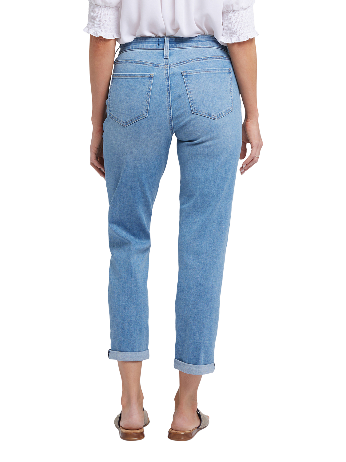 That perfect relaxed denim fit you've been looking for? It's here, in the Margot Girlfriend Jeans by NYDJ. Their just-slouchy-enough cut is slimmer (and more slimming) than a boyfriend jean while maintaining a laid-back looseness through the leg. Our signature Lift Tuck® Technology makes the fit extra flattering by using a patented criss-cross design inside to shape and support your curves. Features a zip fly with button closure, classic five-pocket styling and adjustable rolled cuffs.