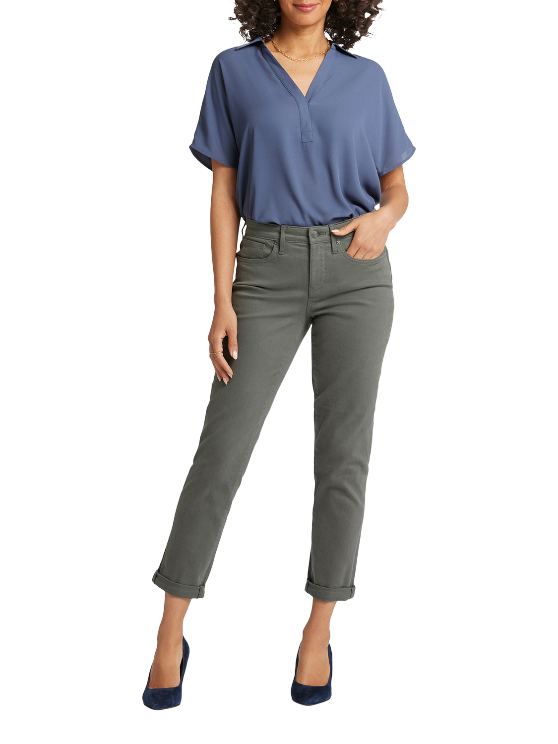 That perfect relaxed denim fit you've been looking for? It's here, in the Margot Girlfriend Jeans by NYDJ. Their just-slouchy-enough cut is slimmer (and more slimming) than a boyfriend jean while maintaining a laid-back looseness through the leg. Our signature Lift Tuck® Technology makes the fit extra flattering by using a patented criss-cross design inside to shape and support your curves. Features a zip fly with button closure, classic five-pocket styling and adjustable rolled cuffs.