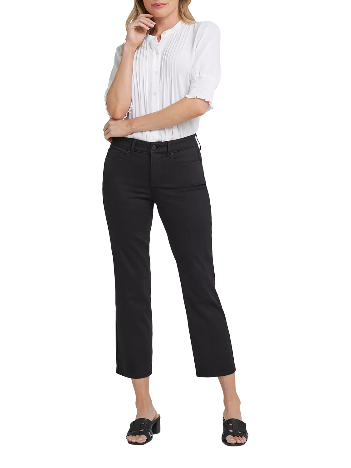 You can't go wrong with our iconic bestselling fit. The curve-sculpting, figure-elongating construction of NYDJ's Marilyn Straight Ankle Jeans pairs well with everything, in a straight-leg silhouette designed to hit at the ankle. Lift Tuck® Technology uses a proprietary slimming panel with a patented criss-cross design to shape and support your curves. Finished with five-pocket styling and a zip fly with button closure.