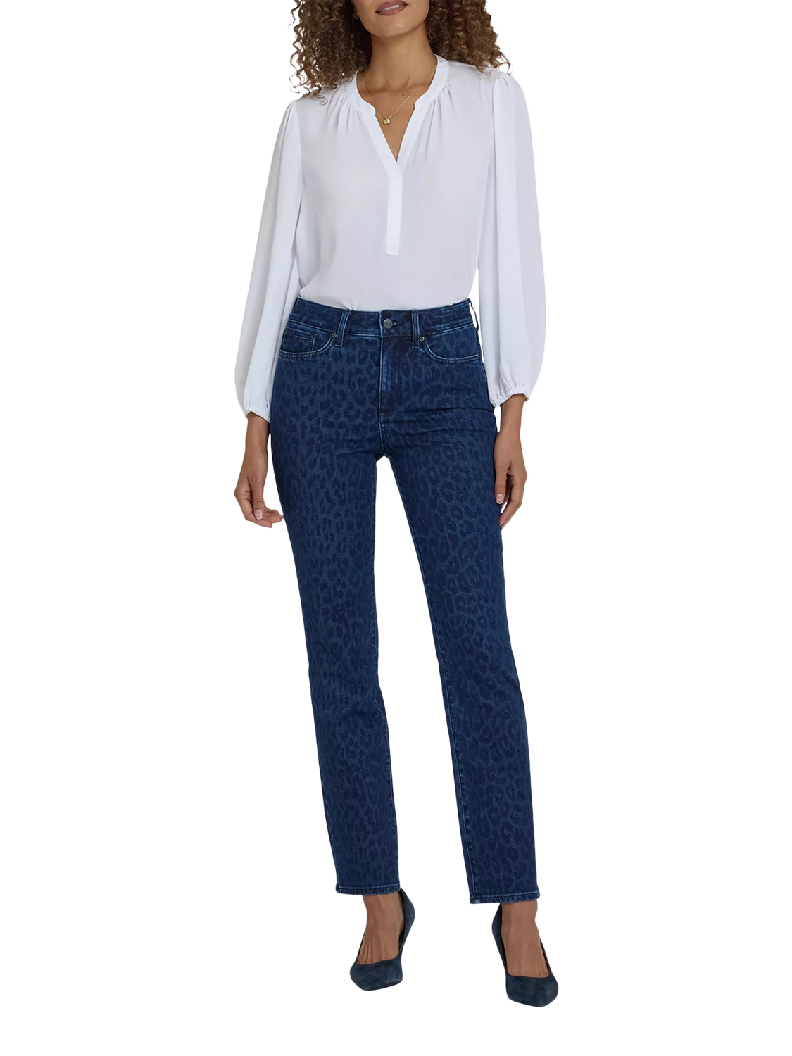 You can't go wrong with this iconic bestselling fit. The curve-sculpting, figure-elongating construction of NYDJ's Marilyn Straight Jeans with High Rise pairs well with everything, in a versatile straight-leg silhouette. This Marilyn Straight style features an even higher rise and a slightly shorter inseam than the typical Marilyn Straight. Plus, Lift Tuck® Technology uses a proprietary slimming panel with a patented criss-cross design to shape and support your curves. Finished with classic five-pocket styling, zip fly and button closure.