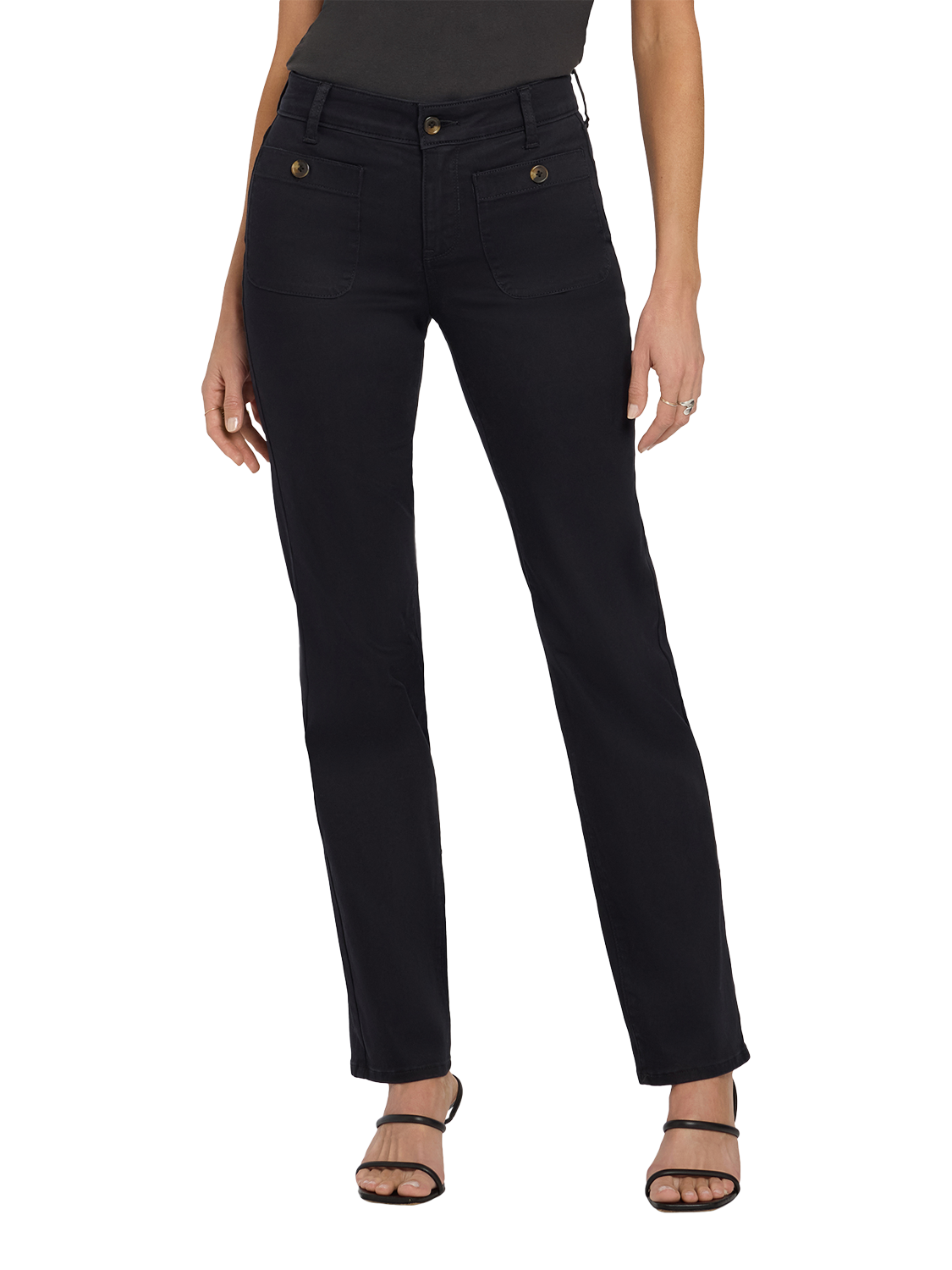 NYDJMarilyn Straight Leg Jeans With Front Button Patch Pockets, Black