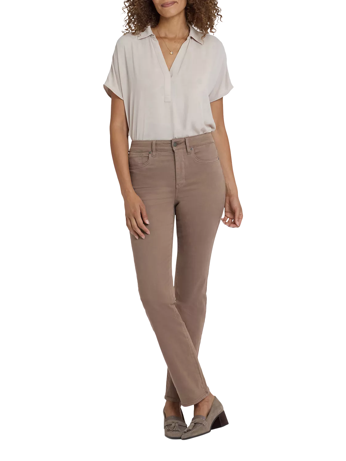 The easy, figure-elongating construction of NYDJ's Marilyn Straight Leg Jeans pairs well with everything, thanks to a flattering waist and a versatile straight-leg fit. Our Lift Tuck® Technology uses a proprietary slimming panel with a patented criss-cross design to shape and support your curves for an always-sleek silhouette. Features classic five-pocket styling and a zip fly with button closure.