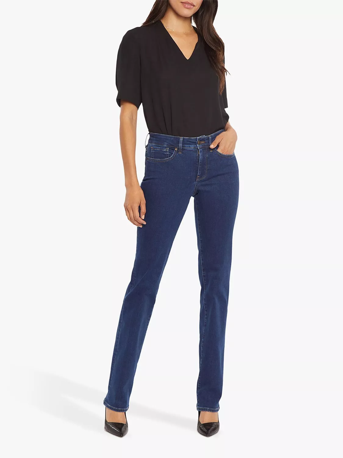 Meet Marilyn, the signature straight-leg style from NYDJ. These jeans pair well with everything, thanks to a flattering waist and a versatile fit. Exclusive Lift Tuck® Technology uses a proprietary slimming panel with a patented criss-cross design to shape and support your curves for an always sleek silhouette. Finished with classic five-pocket styling, zip fly and button closure. This jean is made with earth-friendly methods that reduce water, chemicals and/or energy consumption.